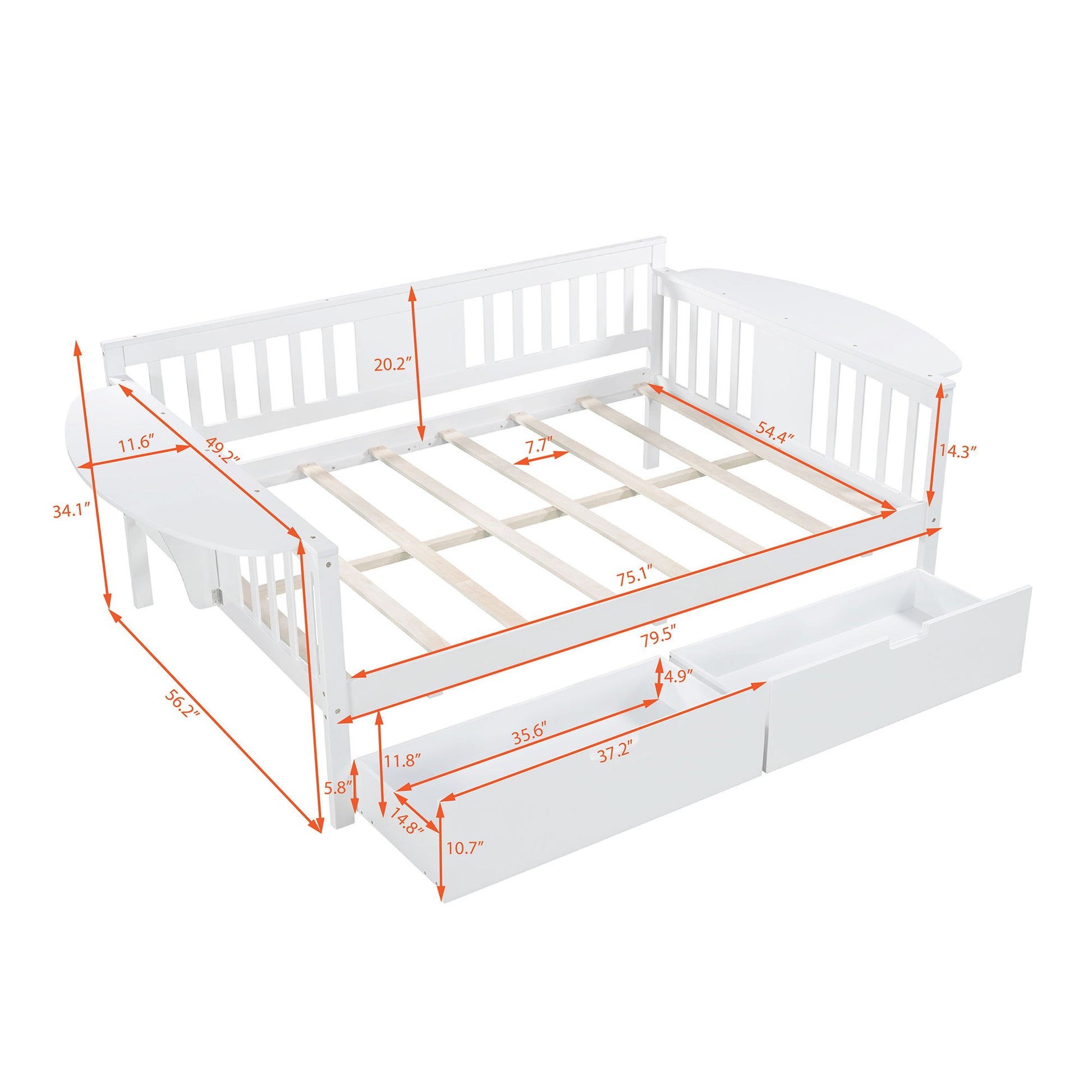 Full Size Daybed With 2 Drawers, Slat Support - White