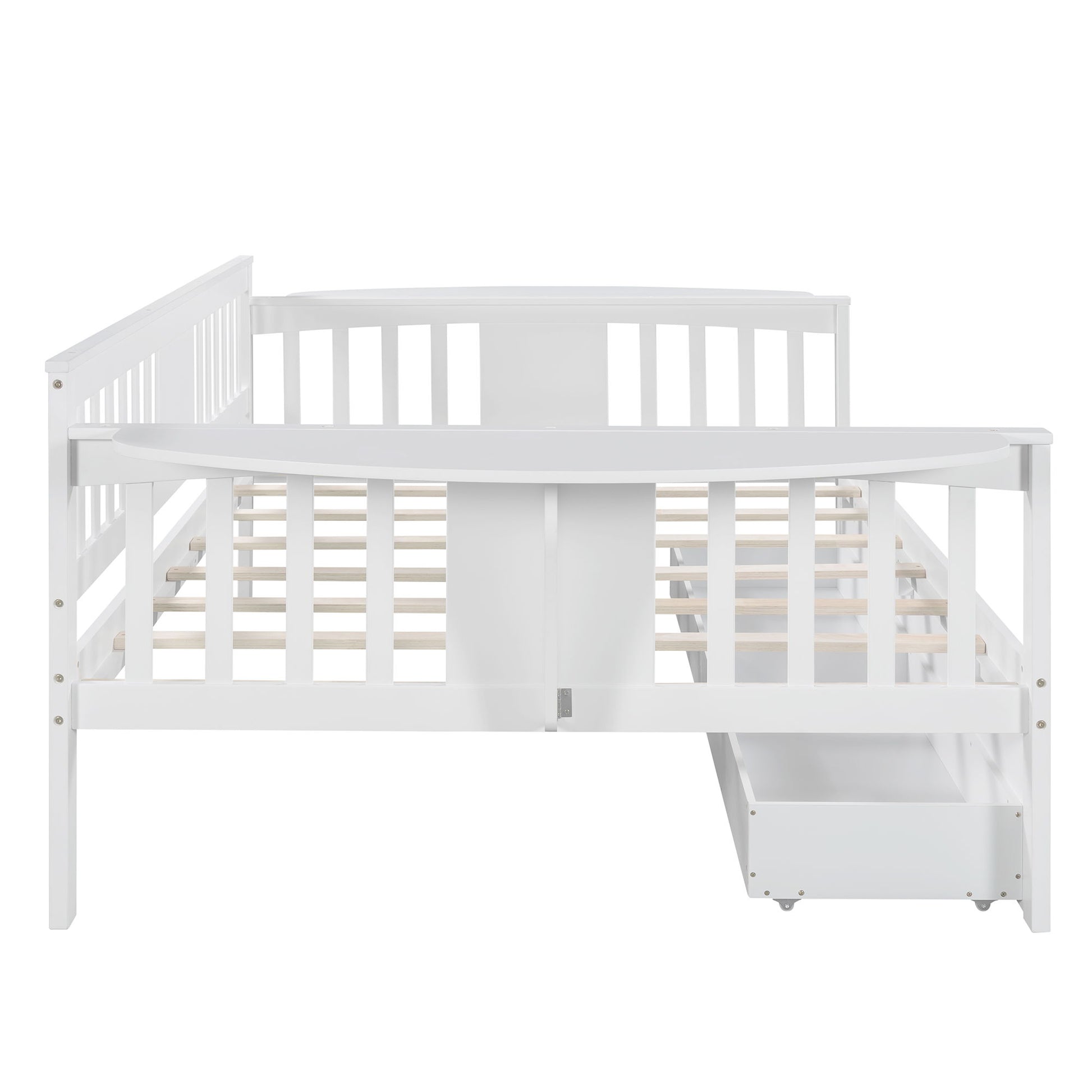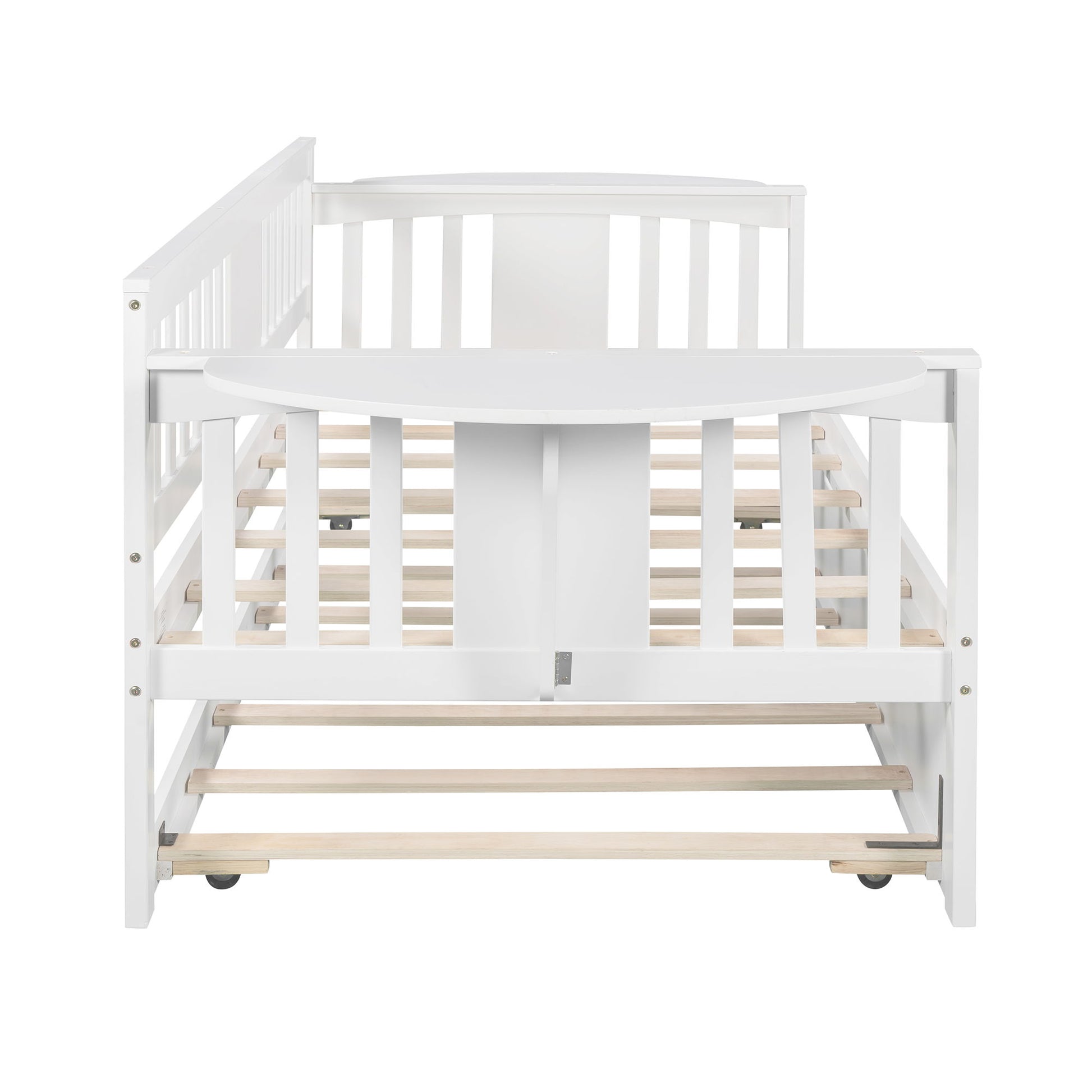 Twin Daybed With Trundle Bed, Sofa Bed For Bedroom - White