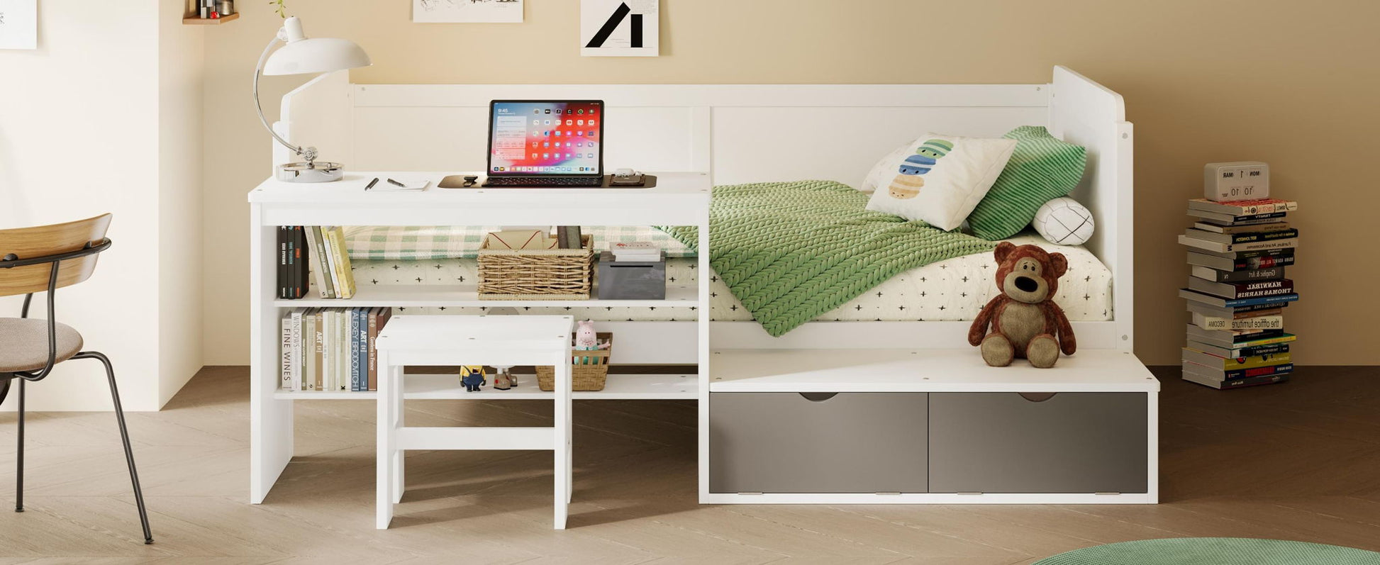 - Comfort and Practicality: Combines comfort with practicality, offering a cozy sleeping area, ample storage, and a convenient workstation. This all-in-one design caters to modern living needs without compromising on style or comfort.