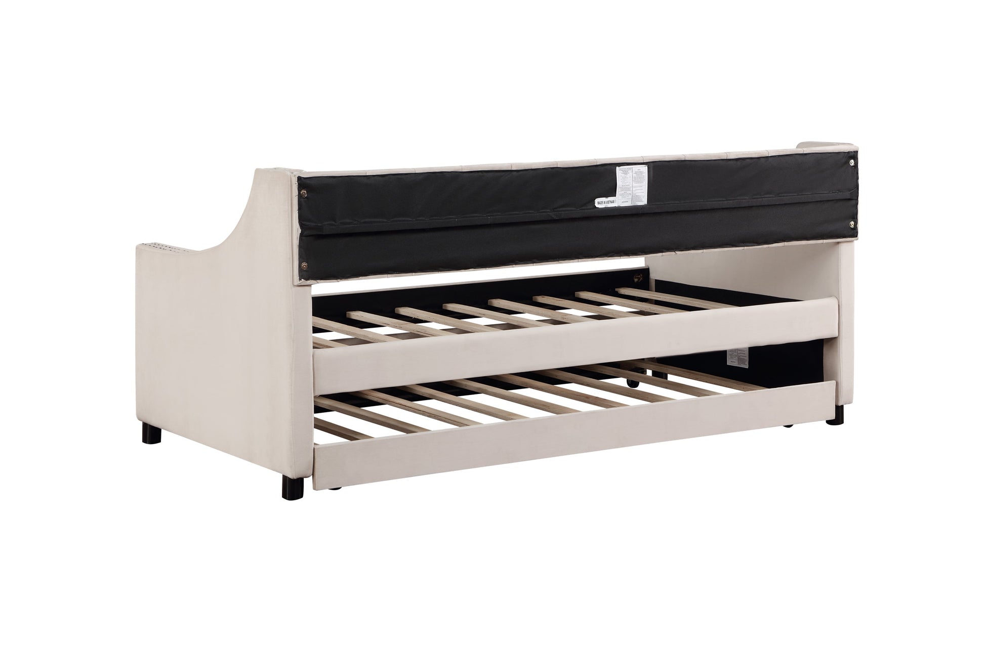 Daybed with Trundle Upholstered Tufted Sofa Bed Arms Full Size Beige