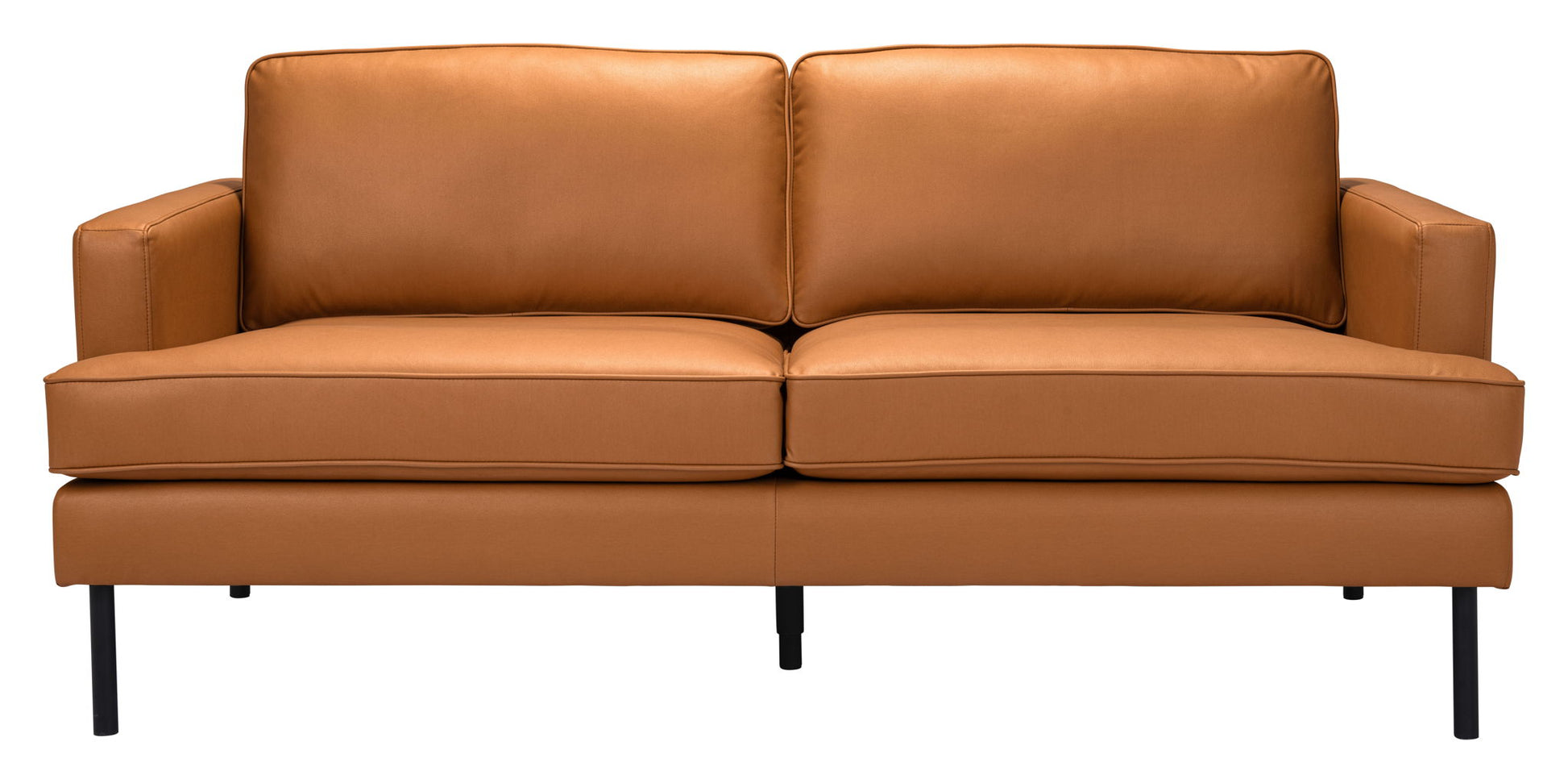 Classically modern in shape and design, the Decade Sofa is comfortable and stylish, wrapped in durable vinyl and on powder coated steel legs. This piece fits in any home or office lobby.