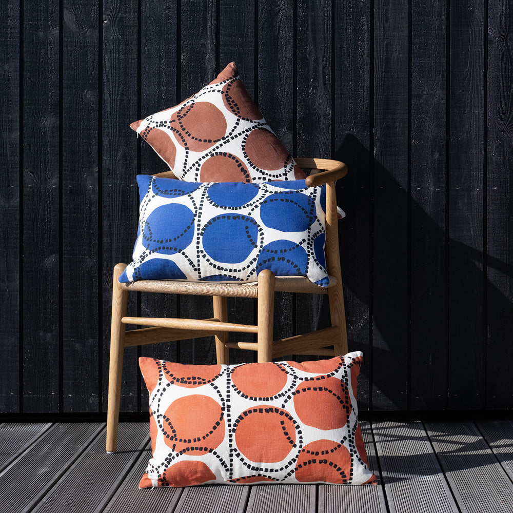 The Decler Small Lumbar Pillow is designed for effortless versatility. Available in rich hues, it adds a refined touch of color and texture to your bed or sofa. Printed on soft 100% cotton slub, the Decler design is inspired by geometric harmony and organic balance.
