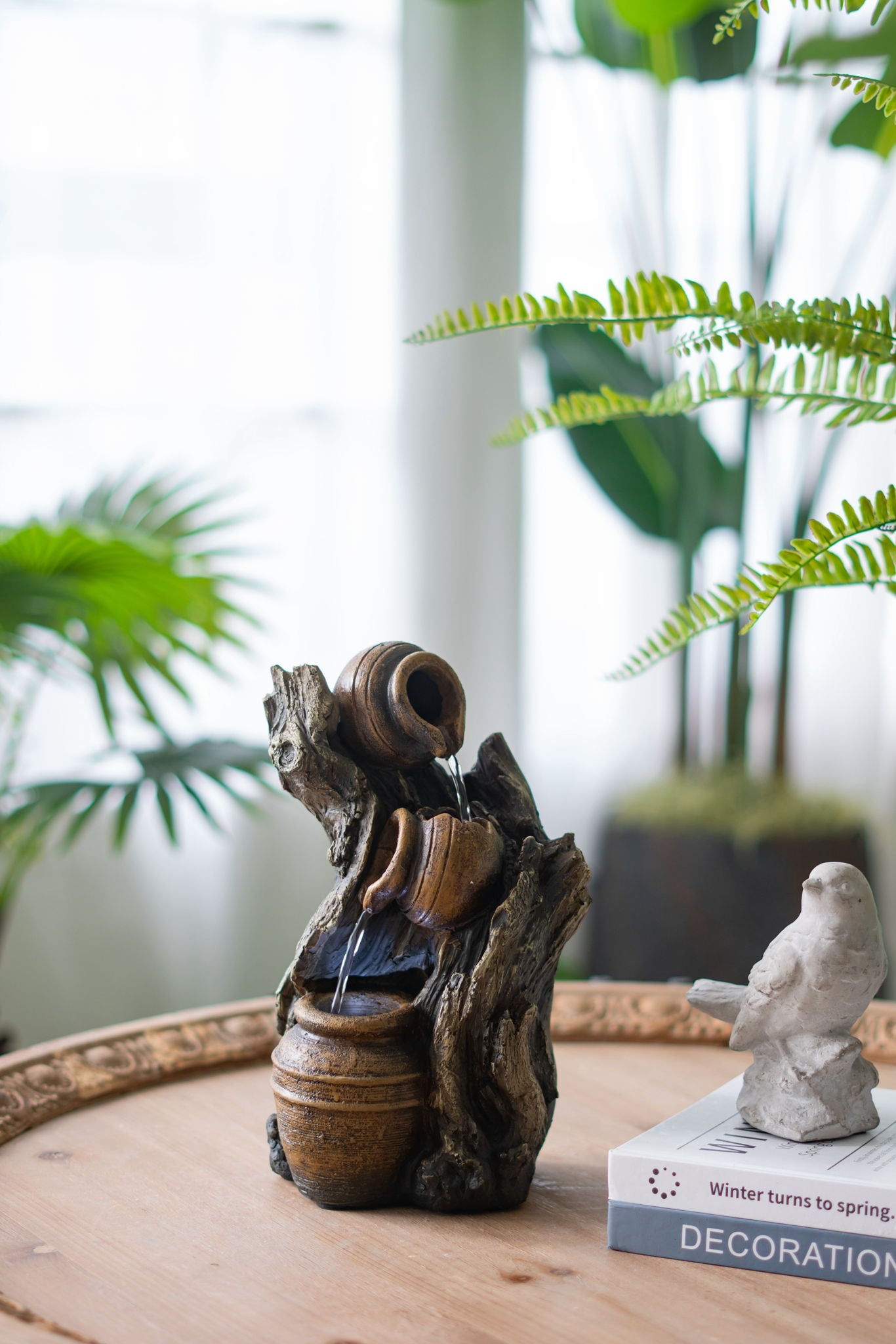 Decorative 3 Tier Water Fountain With Pot Design - Brown