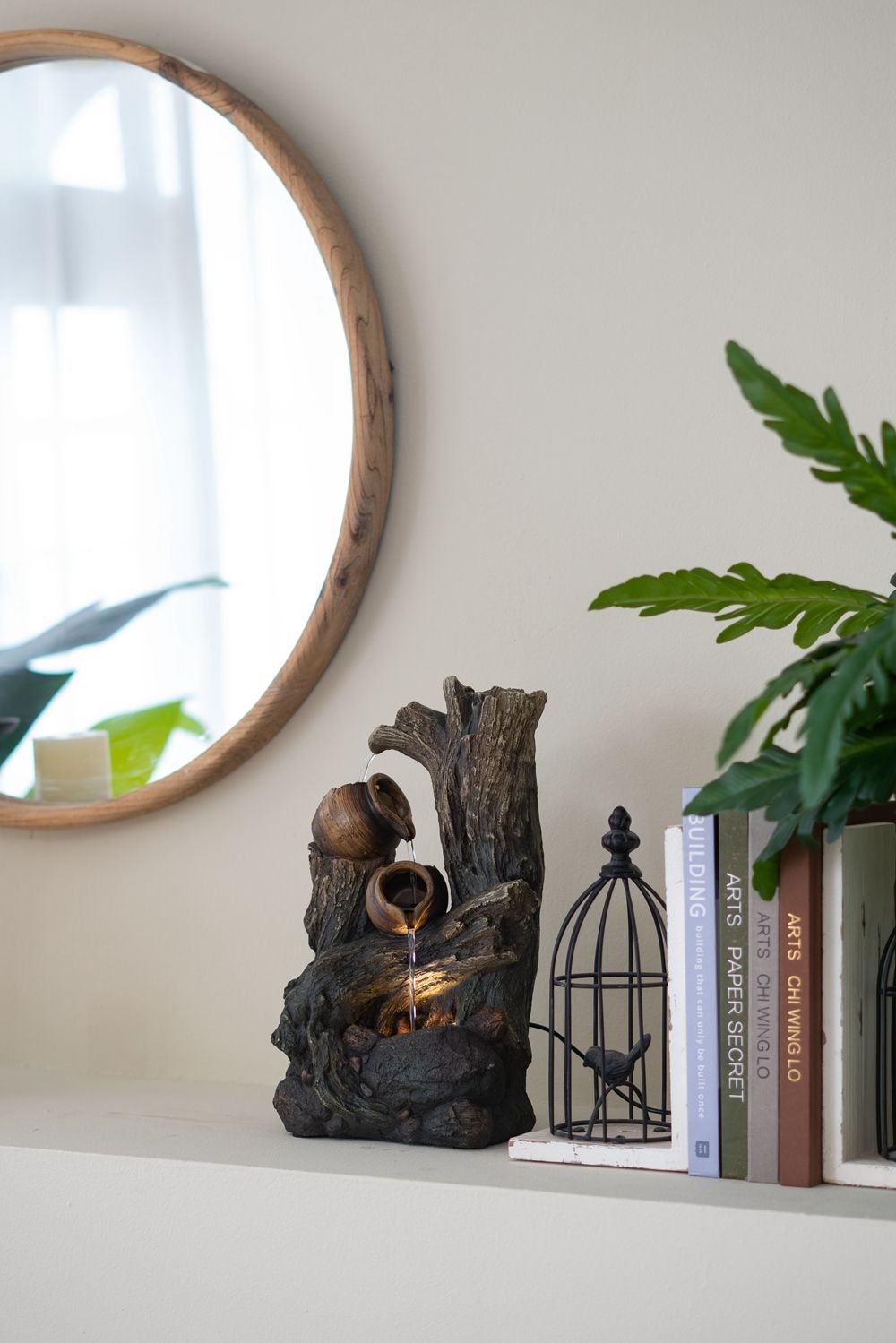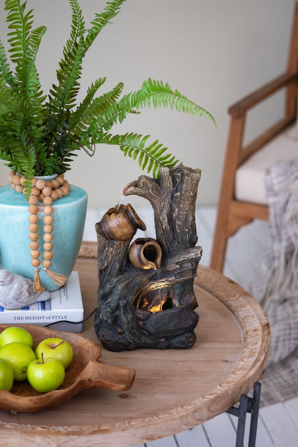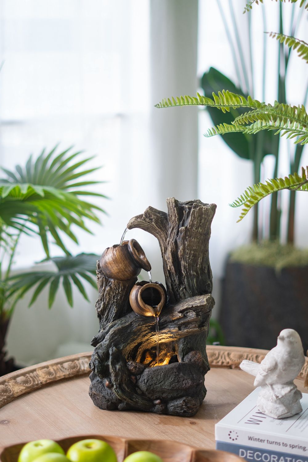 Decorative 4 Tier Broken Pot Water Fountain With LED Light - Brown