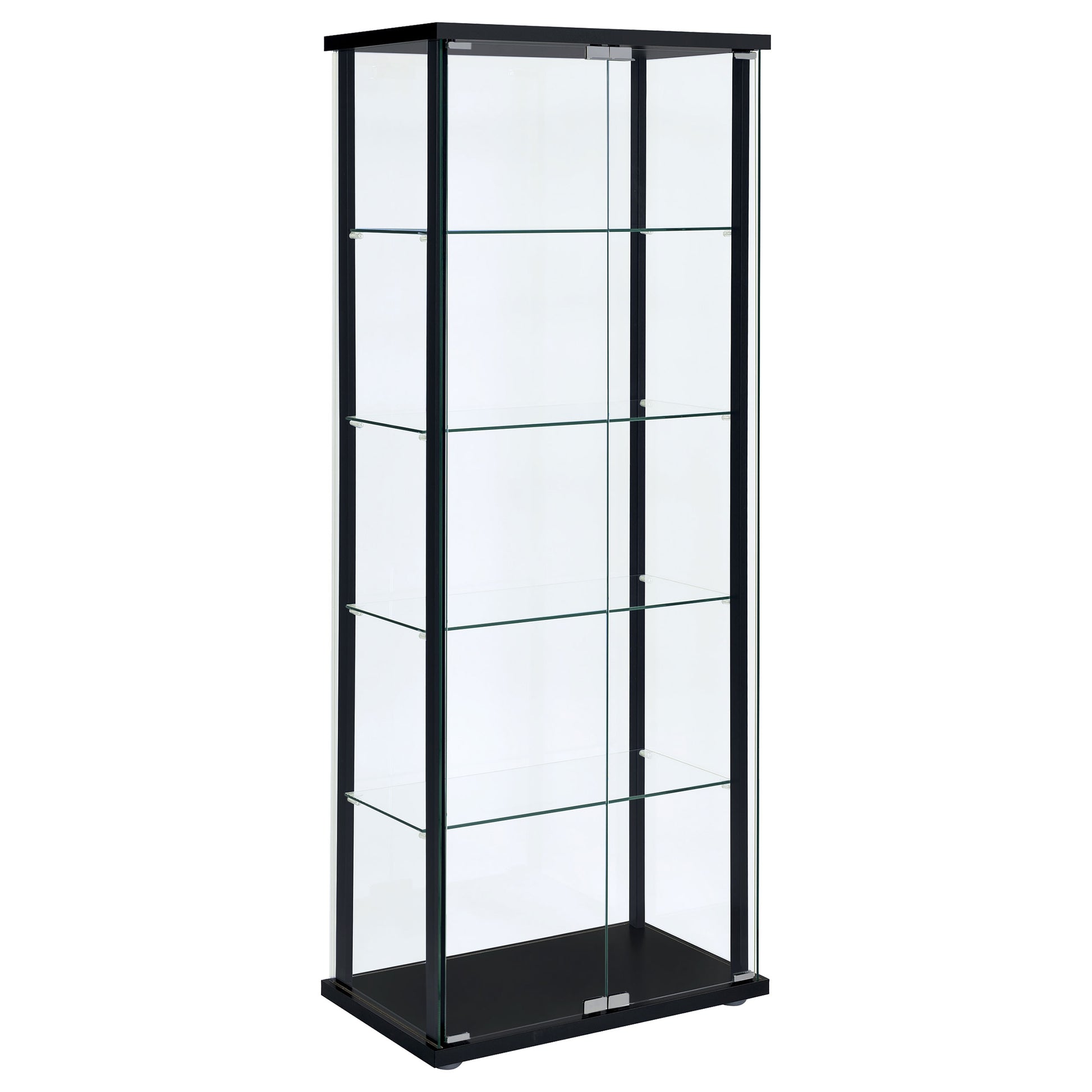 Delphinium 4-Shelf Clear Glass Curio Display Cabinet Black-CoasterEveryday