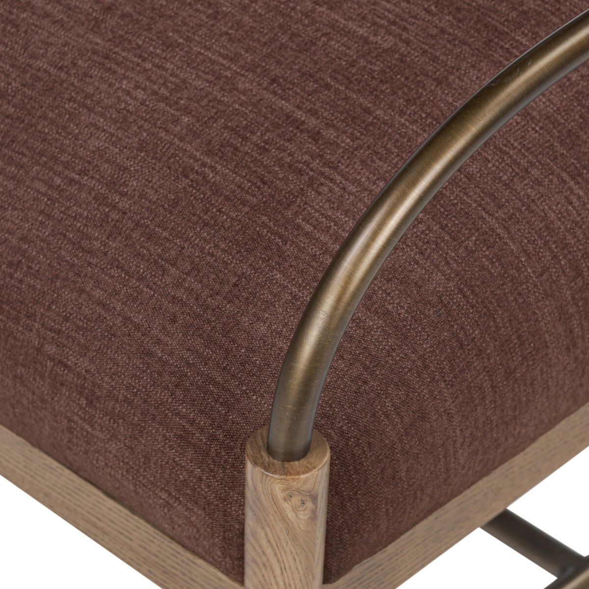 Designed to move effortlessly from room to room, the Demi Accent Stool brings sculptural presence and inviting comfort to any setting. Curved brushed iron arms frame the silhouette with a subtle industrial edge, while amber ash legs ground the piece with warmth and natural character. The result is a distinctive balance of refined materials and thoughtful form.