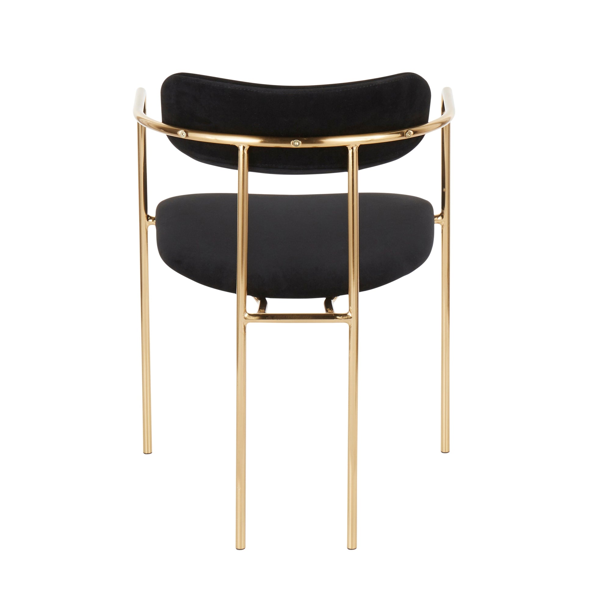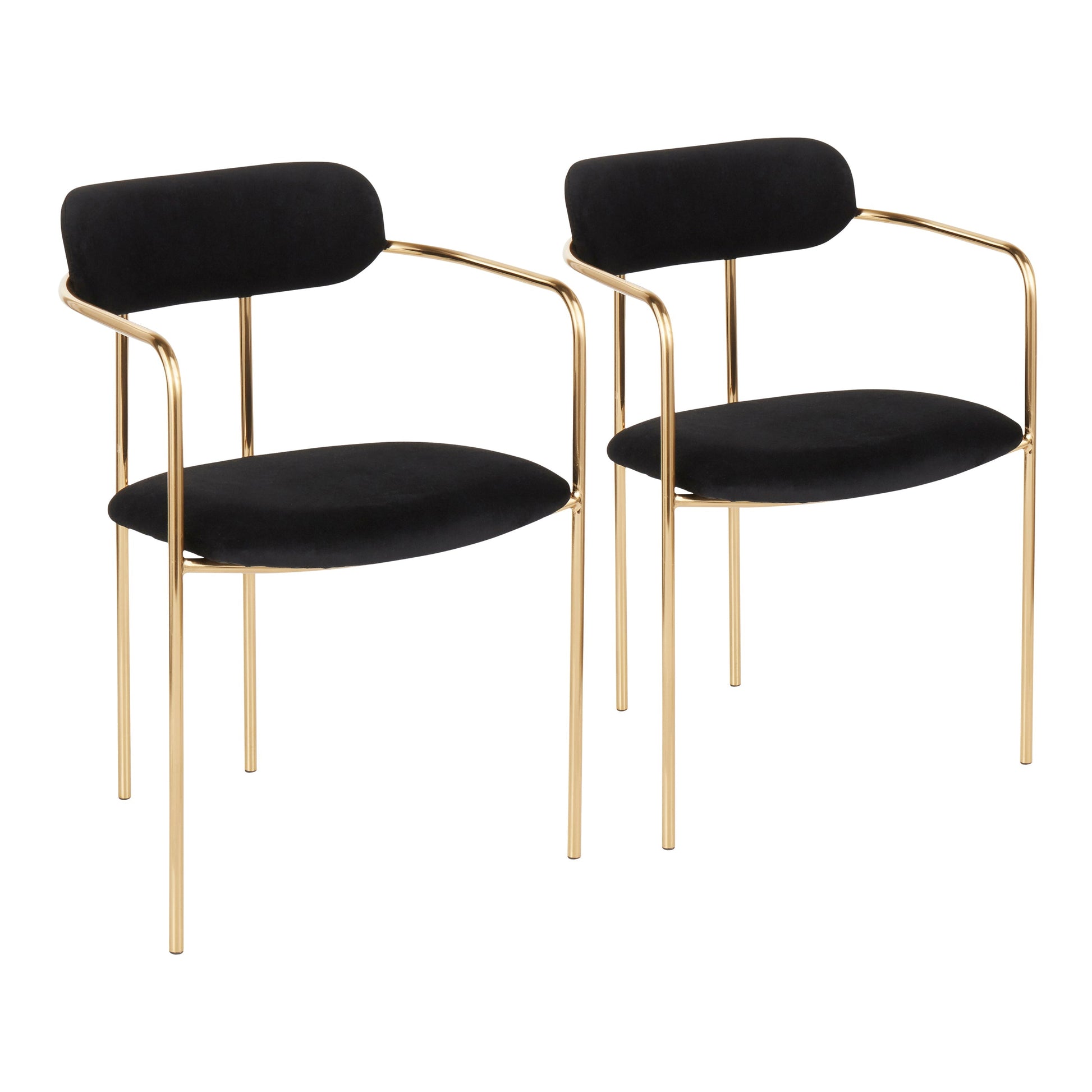 The Demi Chair set offers contemporary dining seating featuring a sleek gold metal frame and plush velvet upholstery, ideal for modern dining rooms or stylish indoor areas.