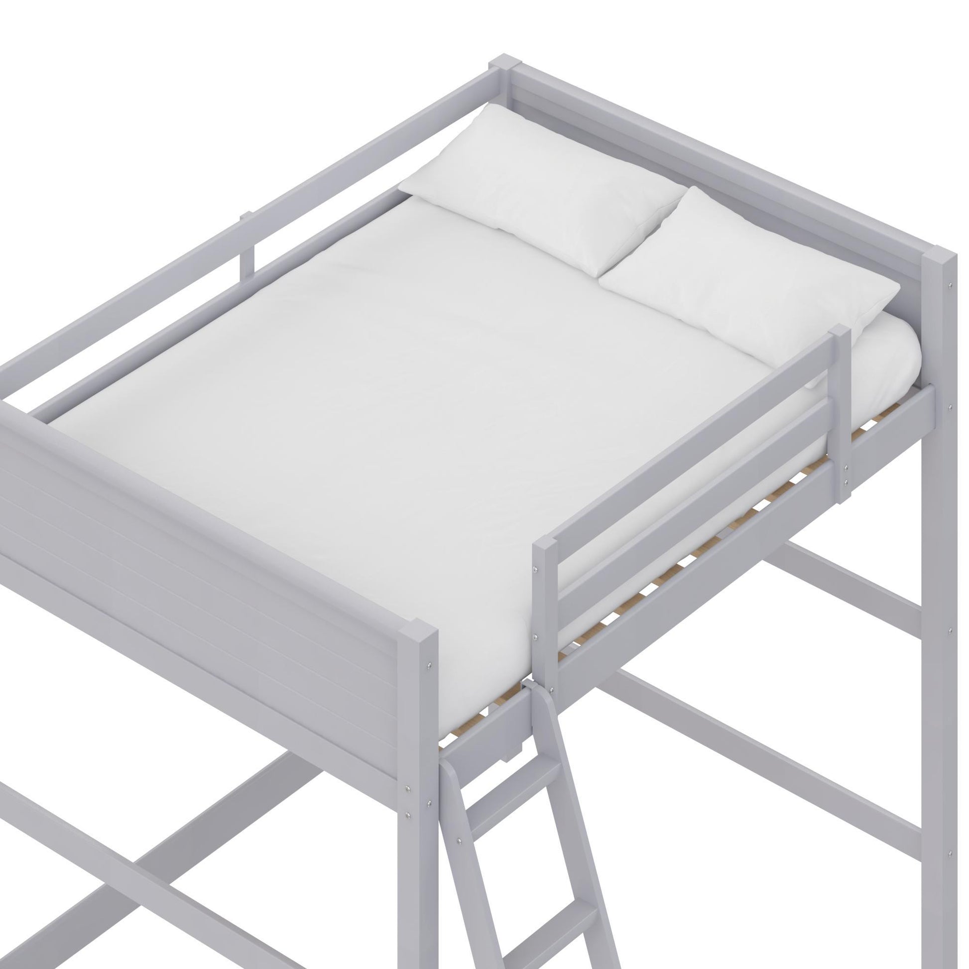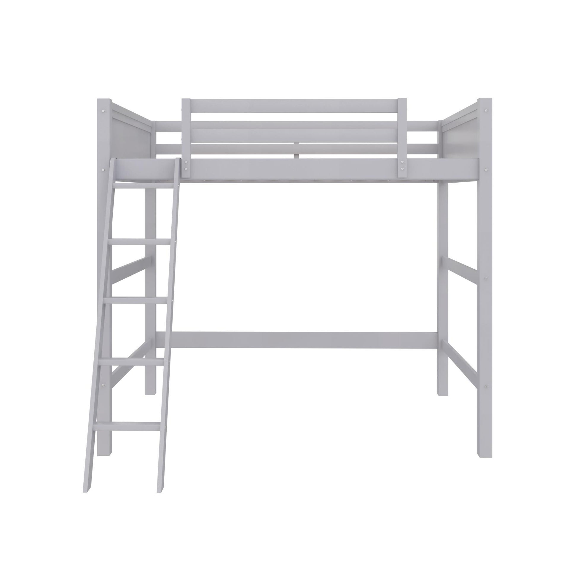 Denver - Full Size Loft Bed, Spacious Under Bed Space, Ladder & Guardrails - Gray