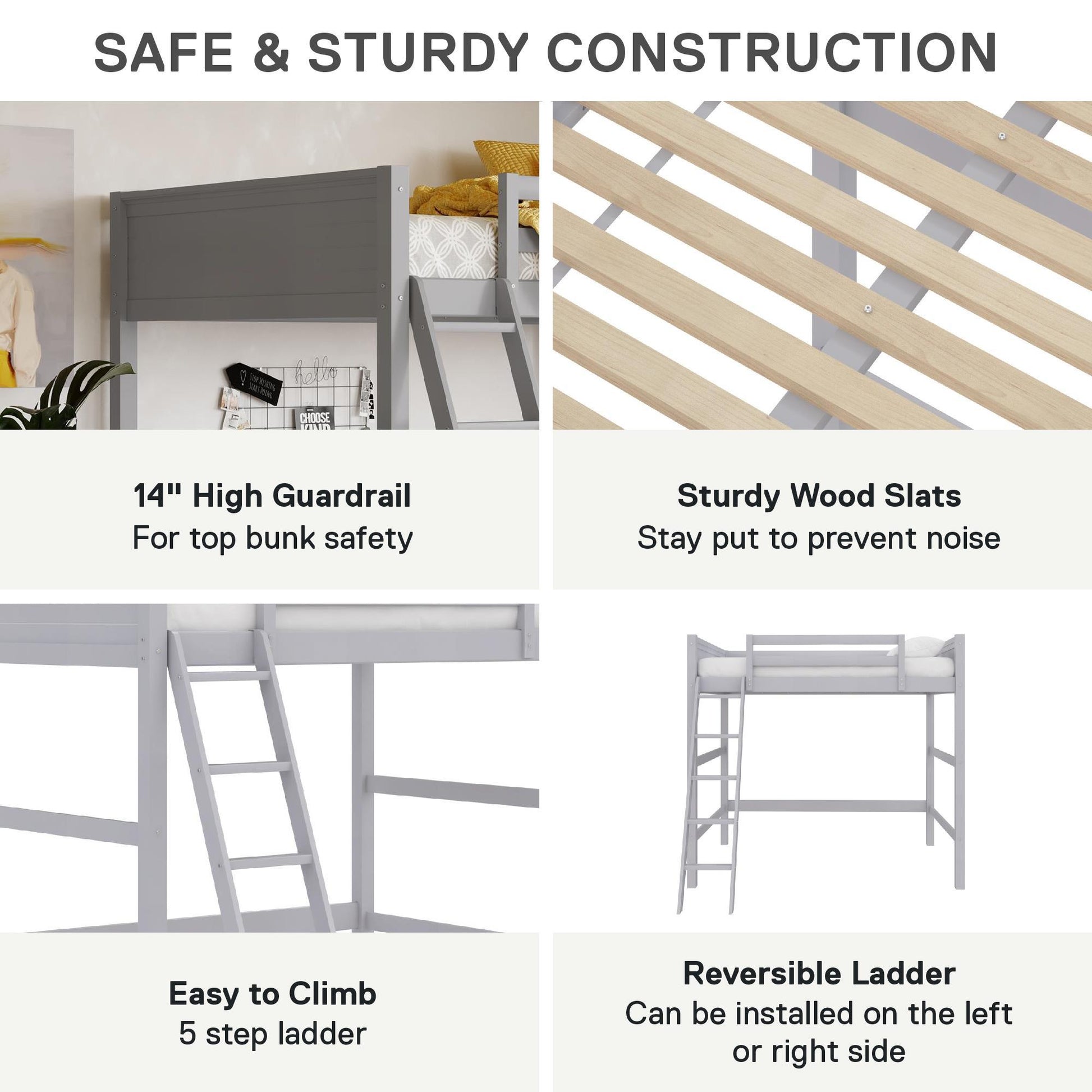 - Flexible Placement: Ladder can be installed on either side to suit room layout