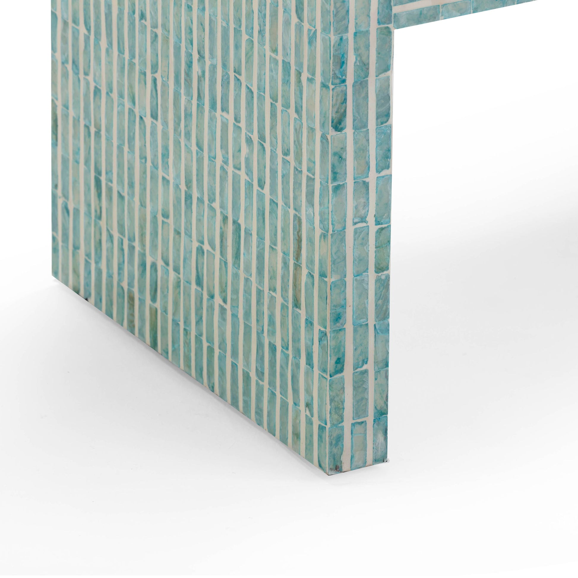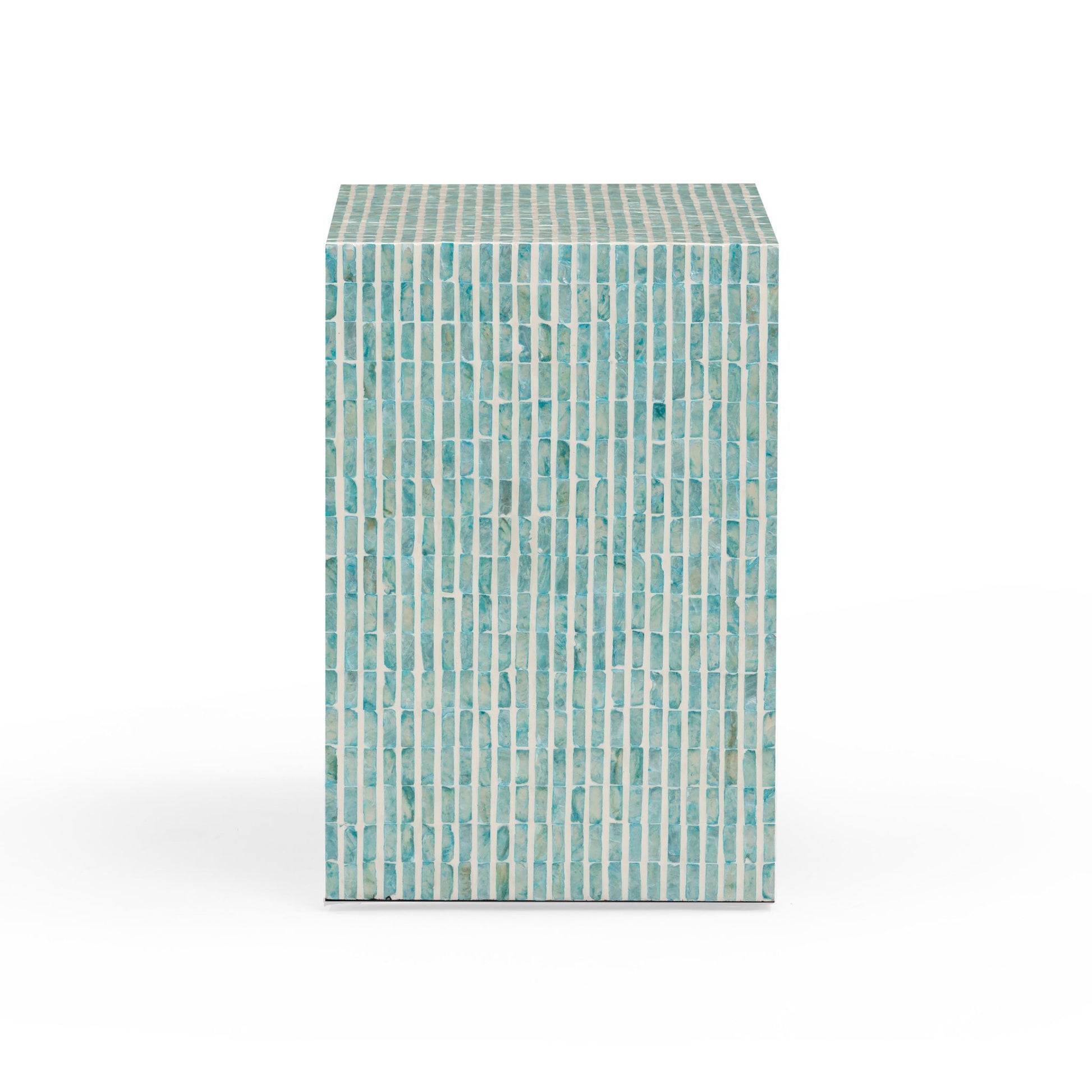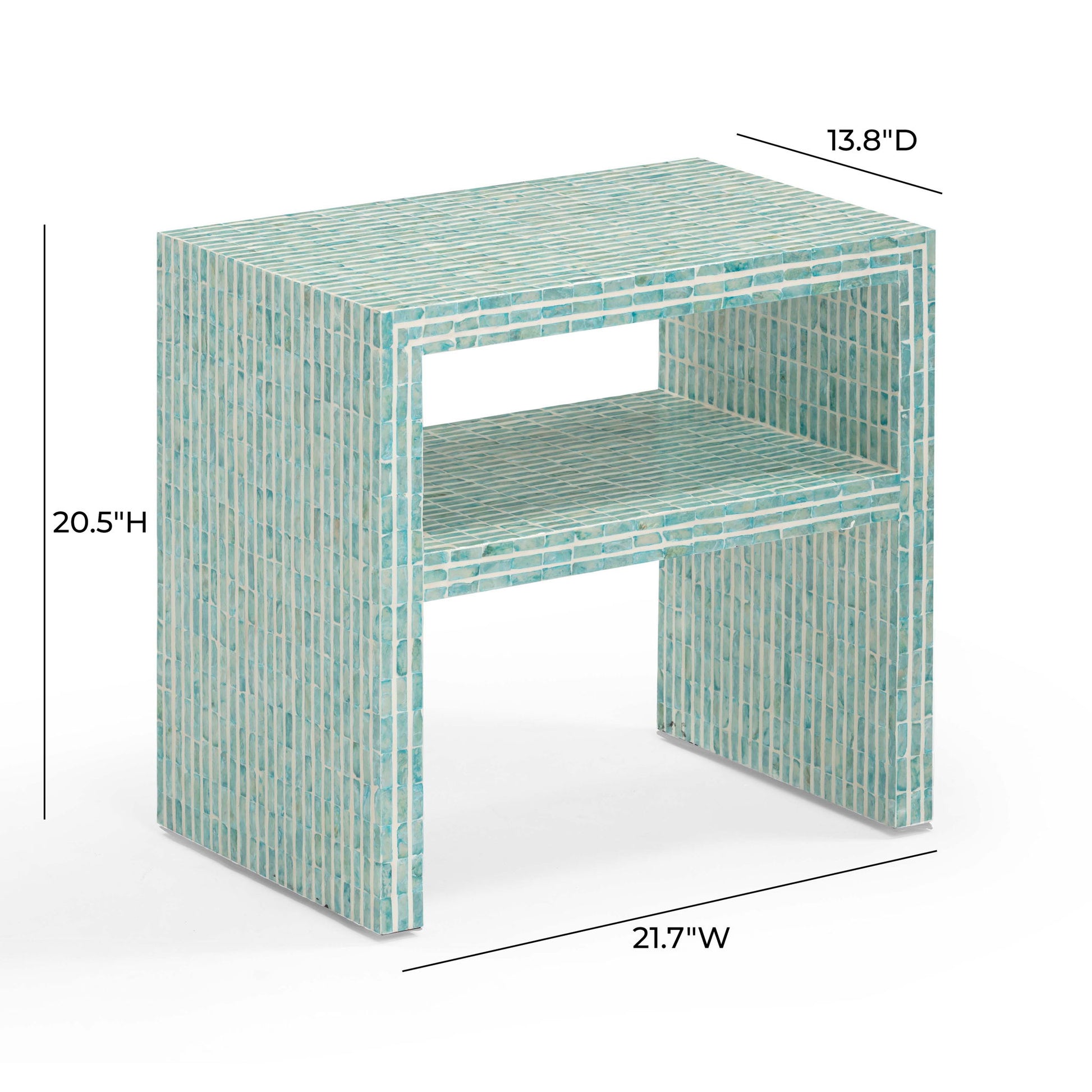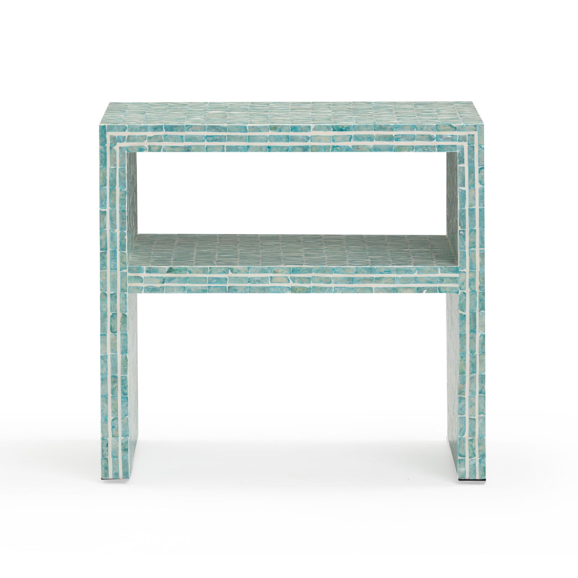 The Derry Nightstand stuns with hand-placed capiz shells in brilliant luminous finish. With an open, airy design and a single shelf for storage, it is the perfect balance of function and flair.
