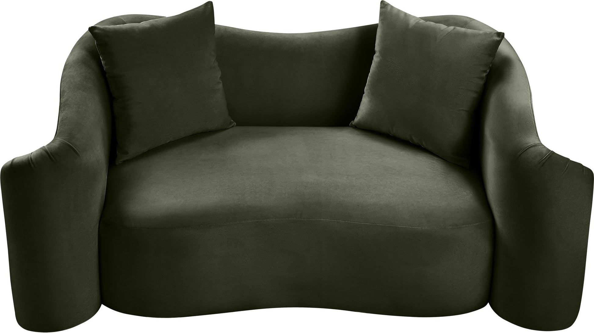 Indulge in pure luxury with the Destin velvet loveseat, featuring plush, oversized cushions and soft velvet upholstery for optimal comfort. Wrap yourself in comfort with a structural masterpiece offering a refreshing yet timeless aesthetic. The organic curves and plush velvet create a truly unique and eye-catching design.
