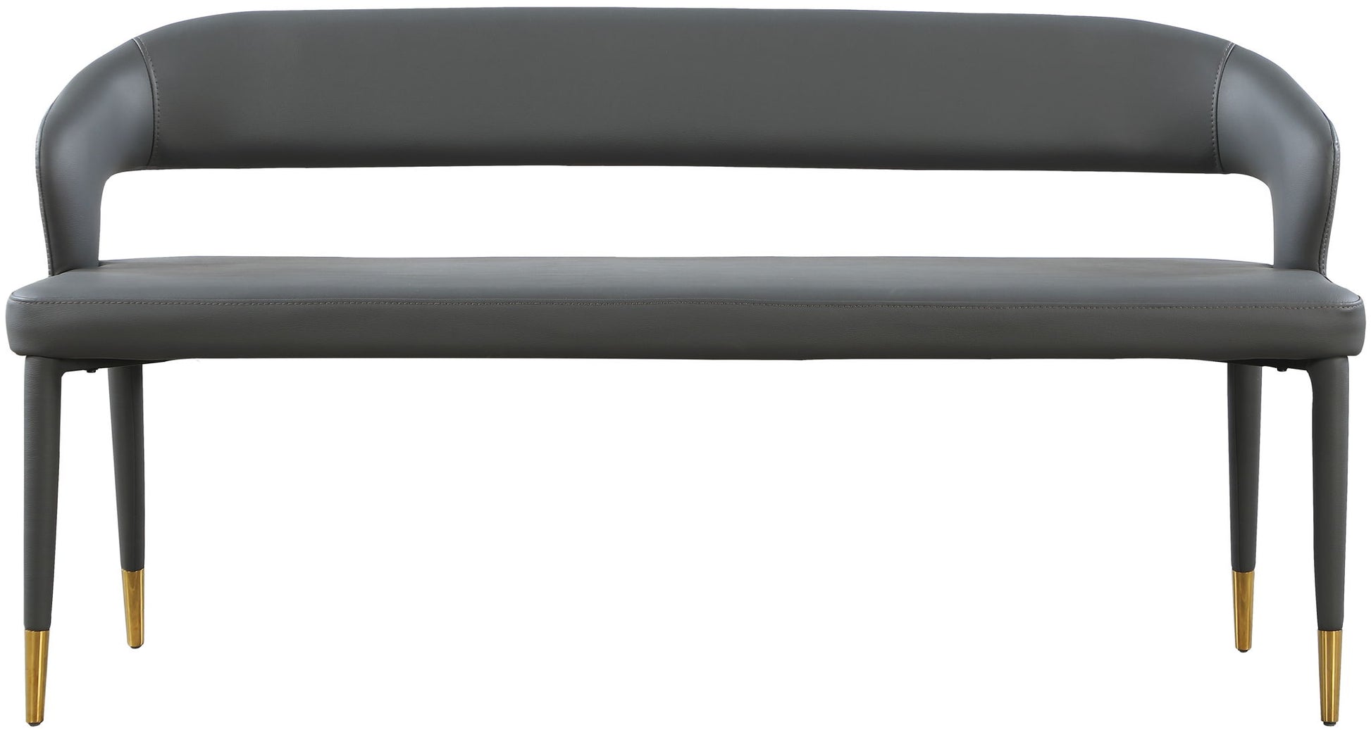 Enjoy extra seating space in your home with this Destiny bench. Its soft upholstery offers coziness while sitting, ensuring you and your guests are always comfortable. A rounded, open back provides additional comfort as well as style. Gold tipped upholstered legs give this bench an extra touch of style that complements any contemporary living space. Its long length guarantees that you ll always have extra space to seat family and friends who visit.