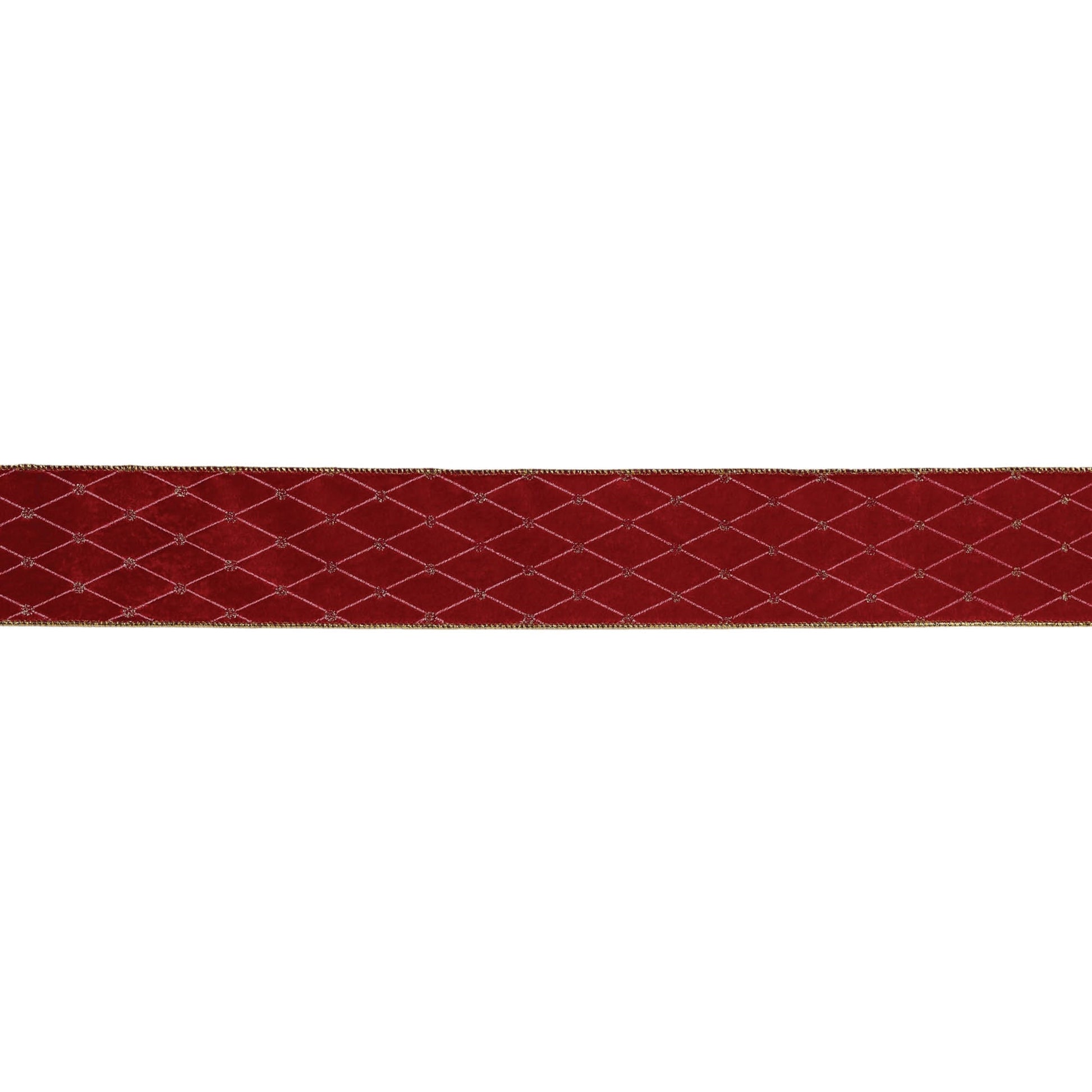Add a festive flair to your holiday creations with this Diamond Pattern Wired Ribbon in rich red tones. Featuring a harlequin diamond pattern, this 2.5" wide ribbon comes in a 5-yard roll, perfect for creating unique gift wraps, bows, and decorative arrangements. The blend of polyester, spandex, and iron materials ensures durability, while the wired edges allow for easy shaping and sturdy displays. Whether you're crafting for the holidays or adding a special touch to your décor, this ribbon offers endless possibilities.