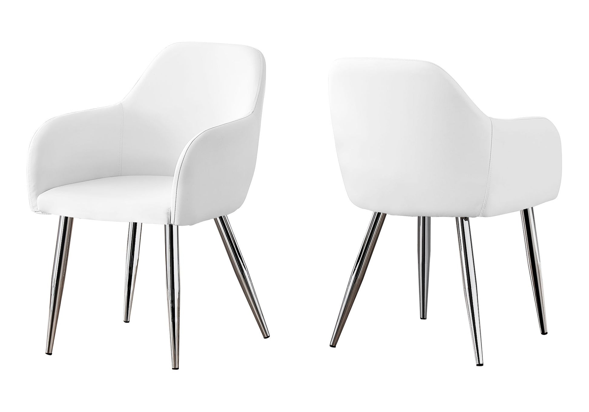 - Stylish Design: The chairs boast a contemporary and modern look, with integrated armrests and tapered metal legs in a chrome finish, adding a touch of elegance to any dining area.