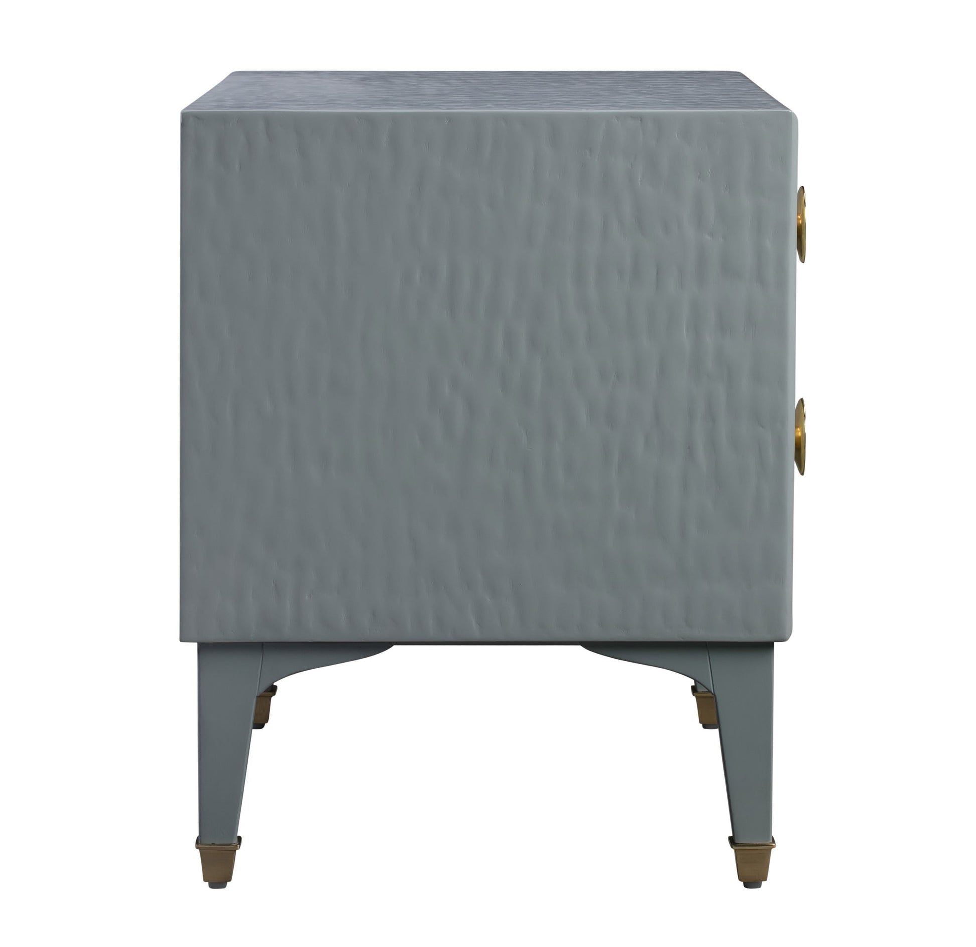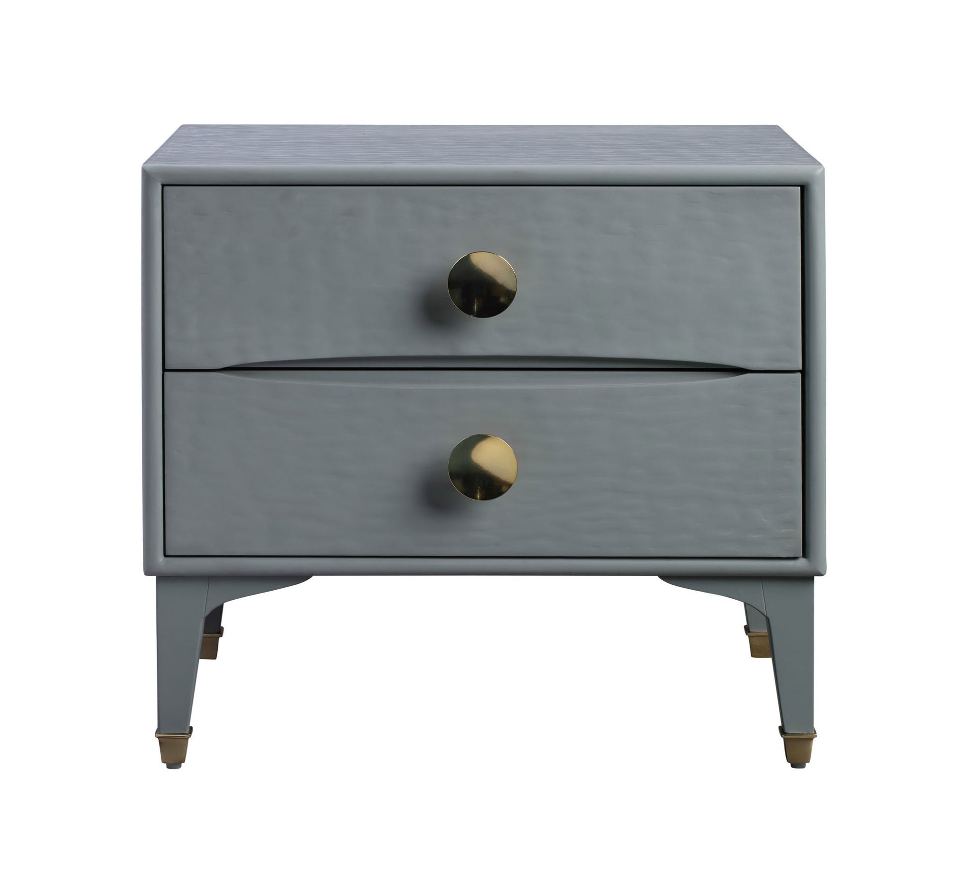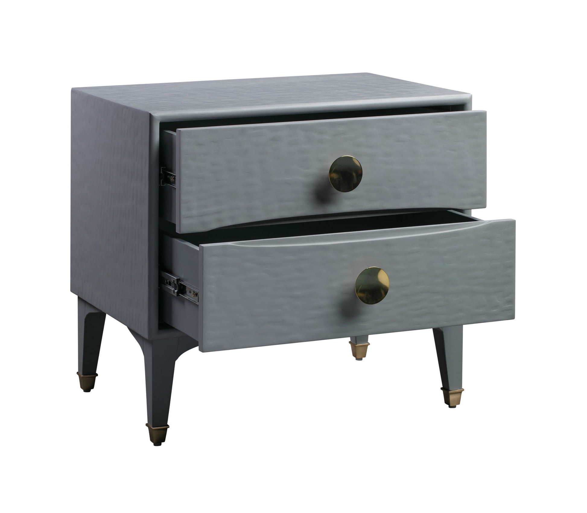 Born to make a statement, the Divine collection offers glam design that'll take your space to the next level. The brass handles and leg-tips pop in contrast to the grey finish and the undulating surface provides texture and added sophistication. Combine the chest with the nightstand for the ultimate look.