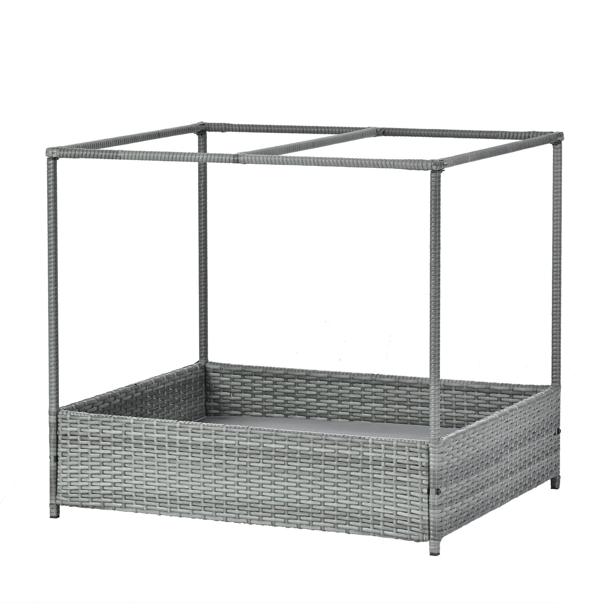 The Dog Bed With Curtain by GigaTech is an elevated pet bed designed for outdoor and indoor use, providing a comfortable and protected resting place for your pet in areas such as patios, backyards, or poolside.