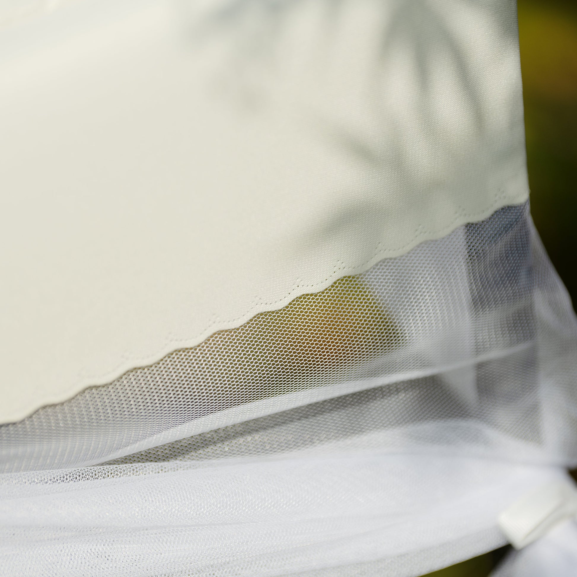 - Elevated design with mesh curtain offering protection from sunlight and insects
