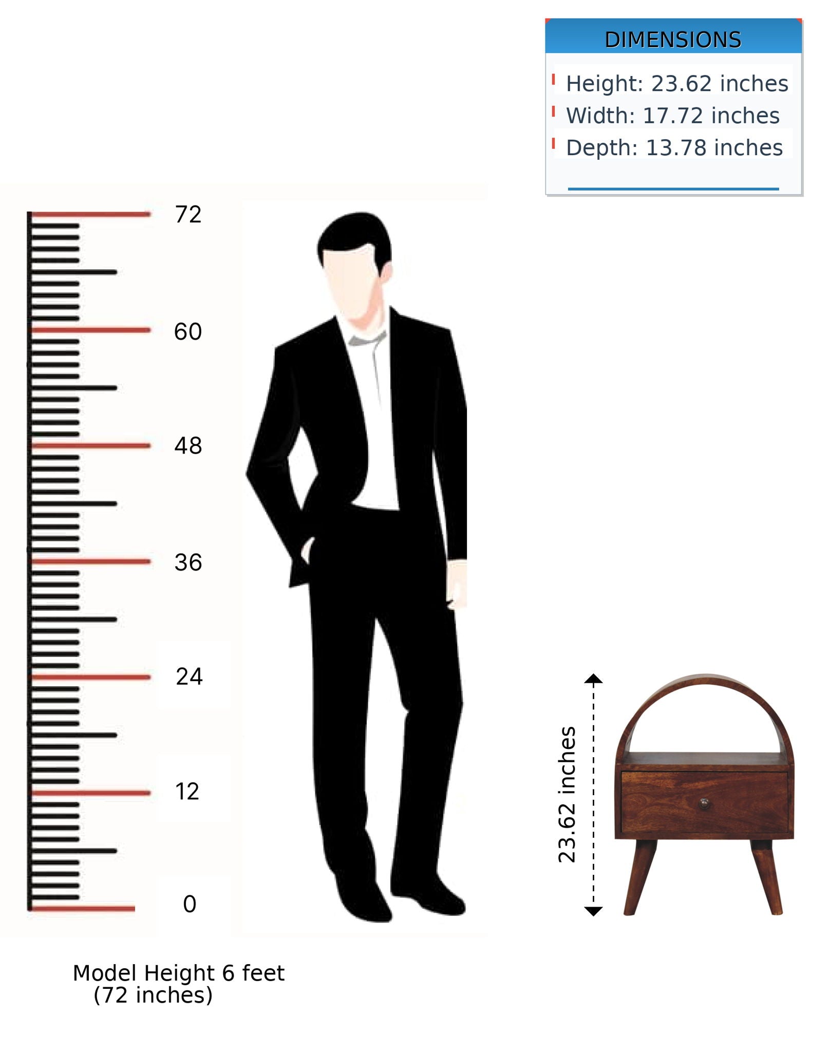 - Chestnut Dome Bedside - This bedside has been constructed from 100% solid mango wood and has a beautiful chestnut finish, it has been made with rounded top design with smooth edges, as well as a open slot and 1 drawer which feature a shiny brass knob, along with 4 Nordic style legs.