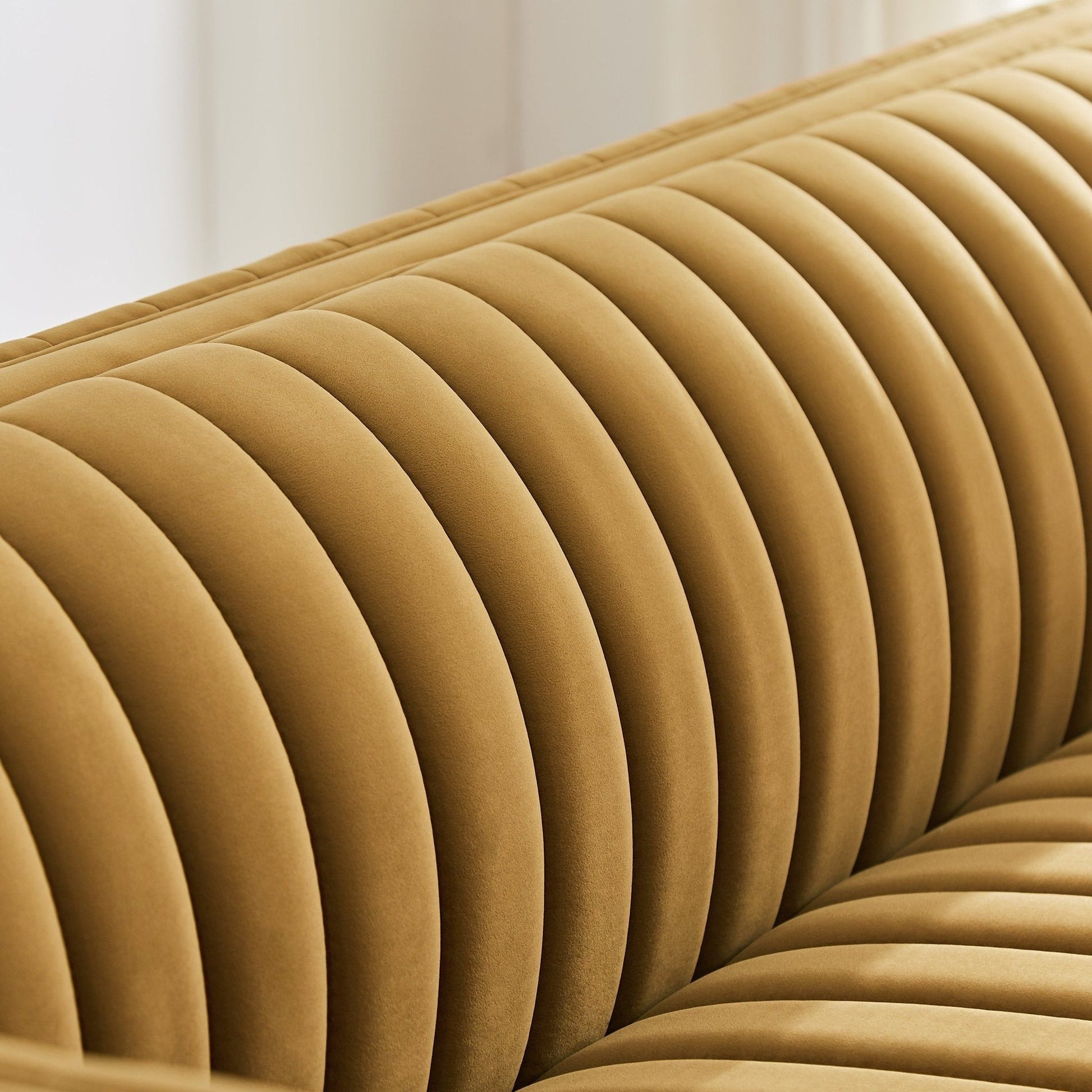 Dominic - Channel Tufted Velvet Sofa - Dark Yellow
