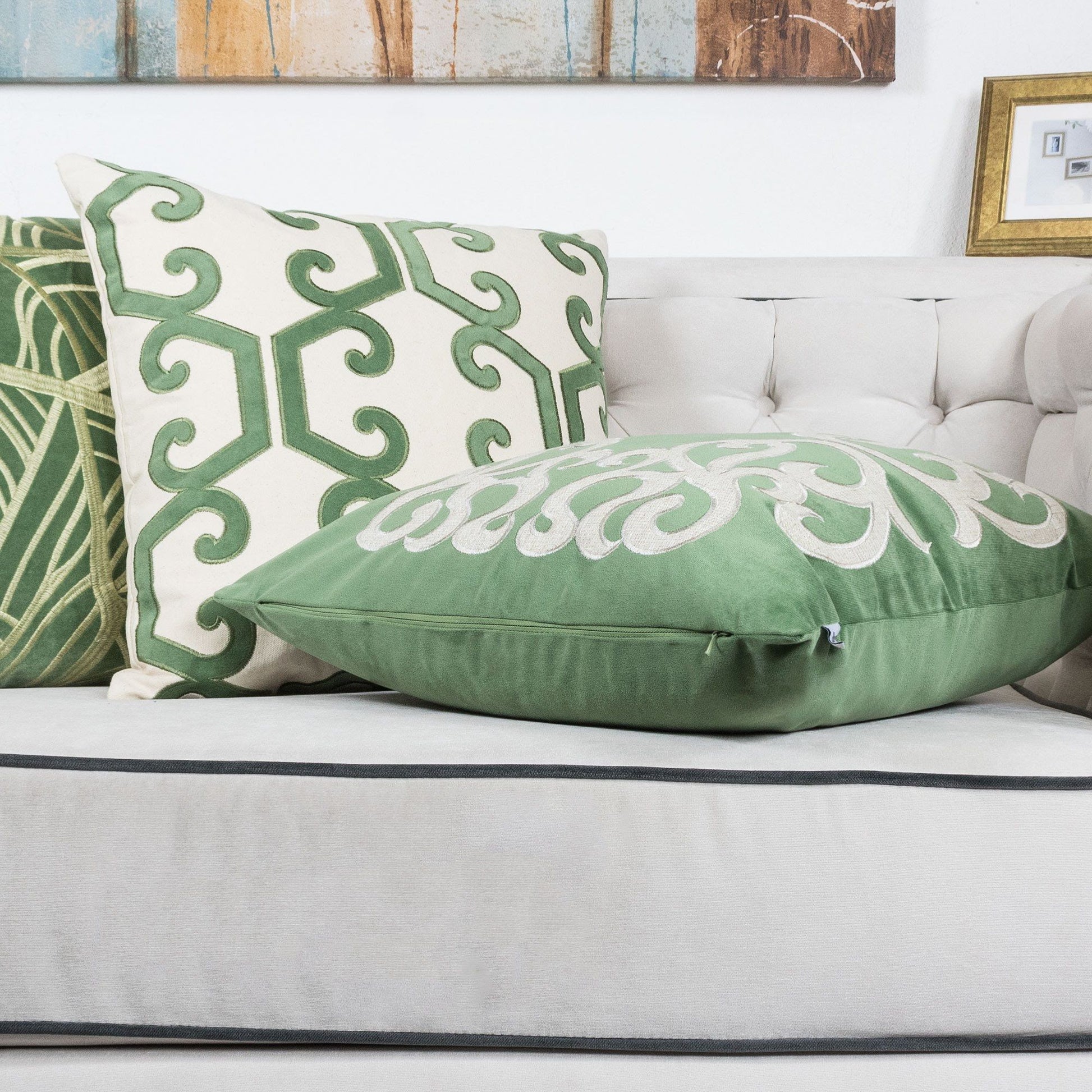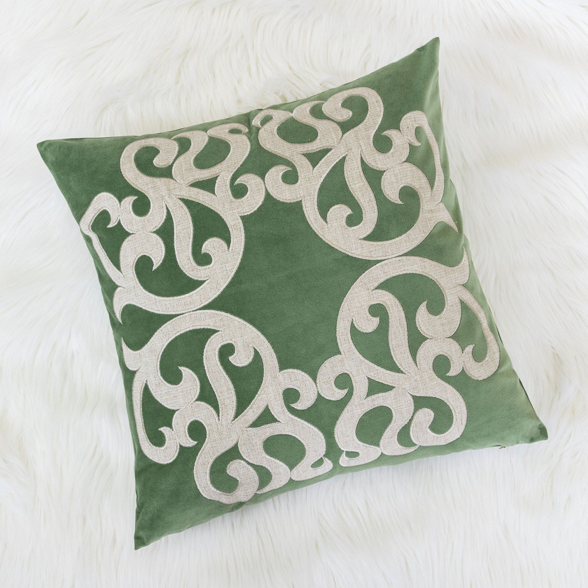 Dora - Vintage Vine Pillow Cover With Matching Back - Green