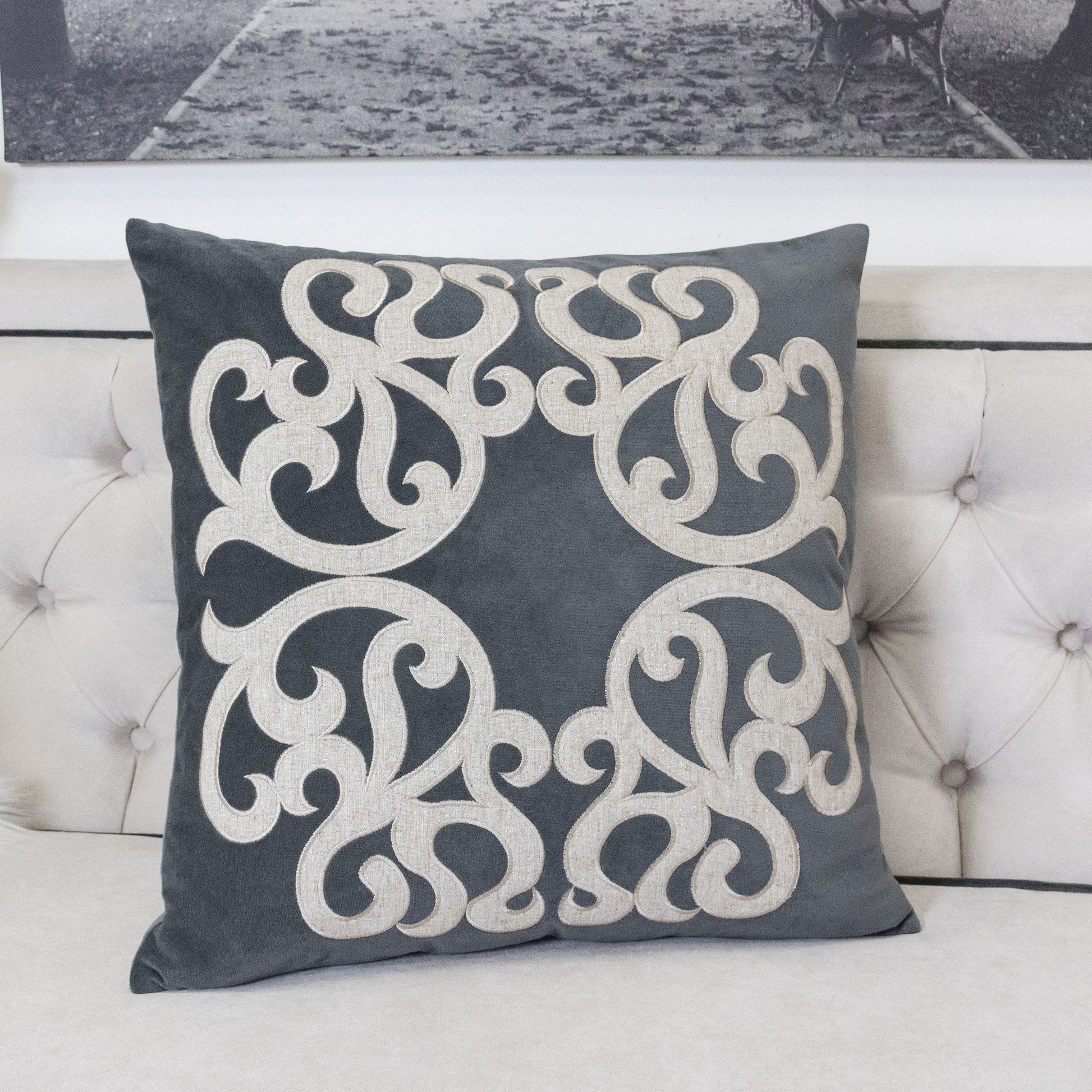 Dora - Vintage Vine Pillow Cover With Matching Back - Grey