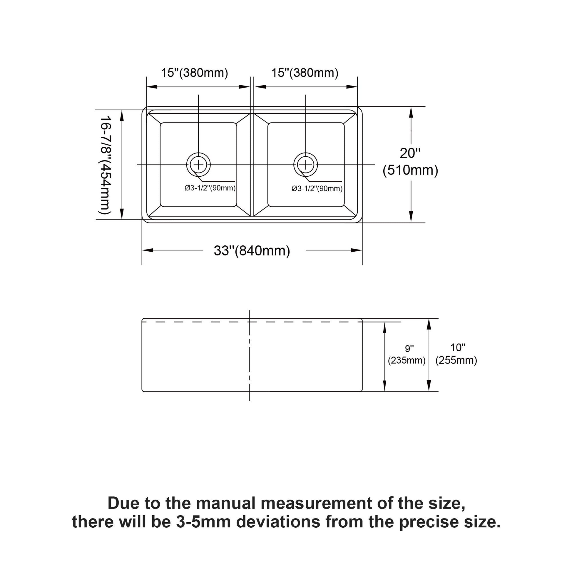 - Perfect Fit: 33 x 20 x 10 inch dimensions fit standard cabinetry with a standard 3-1/2 inch drain opening