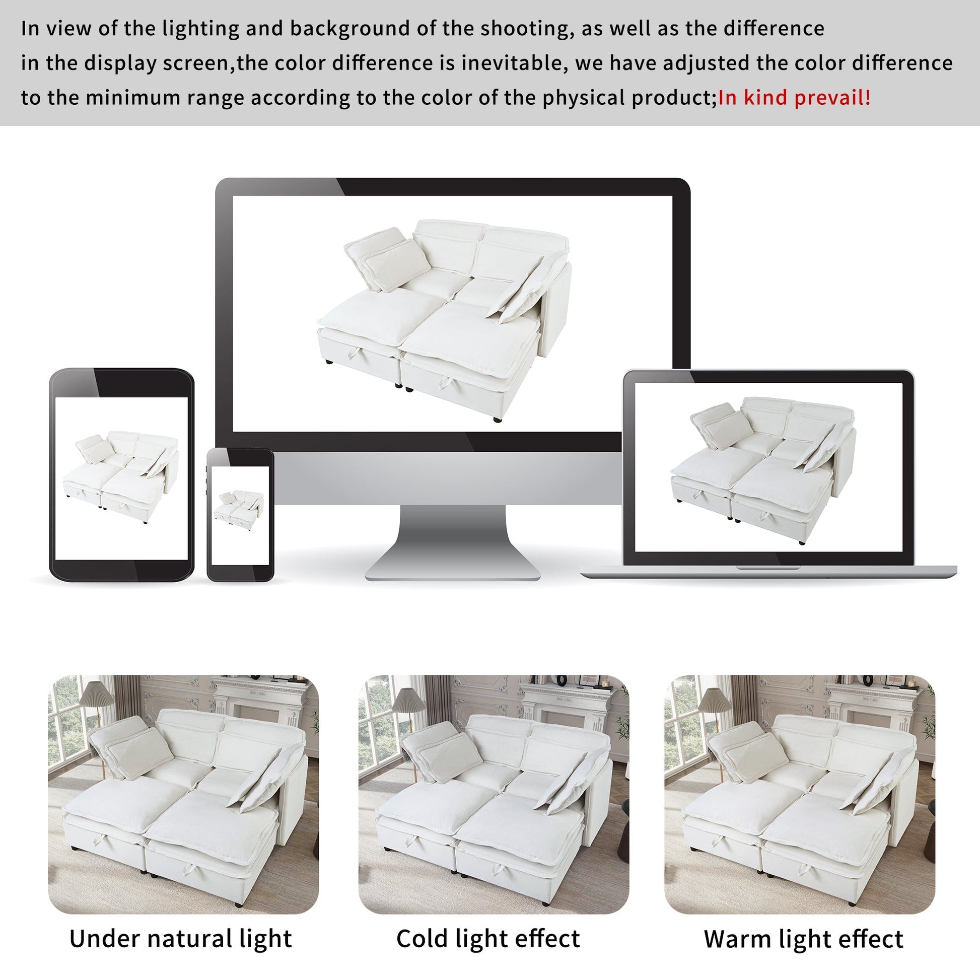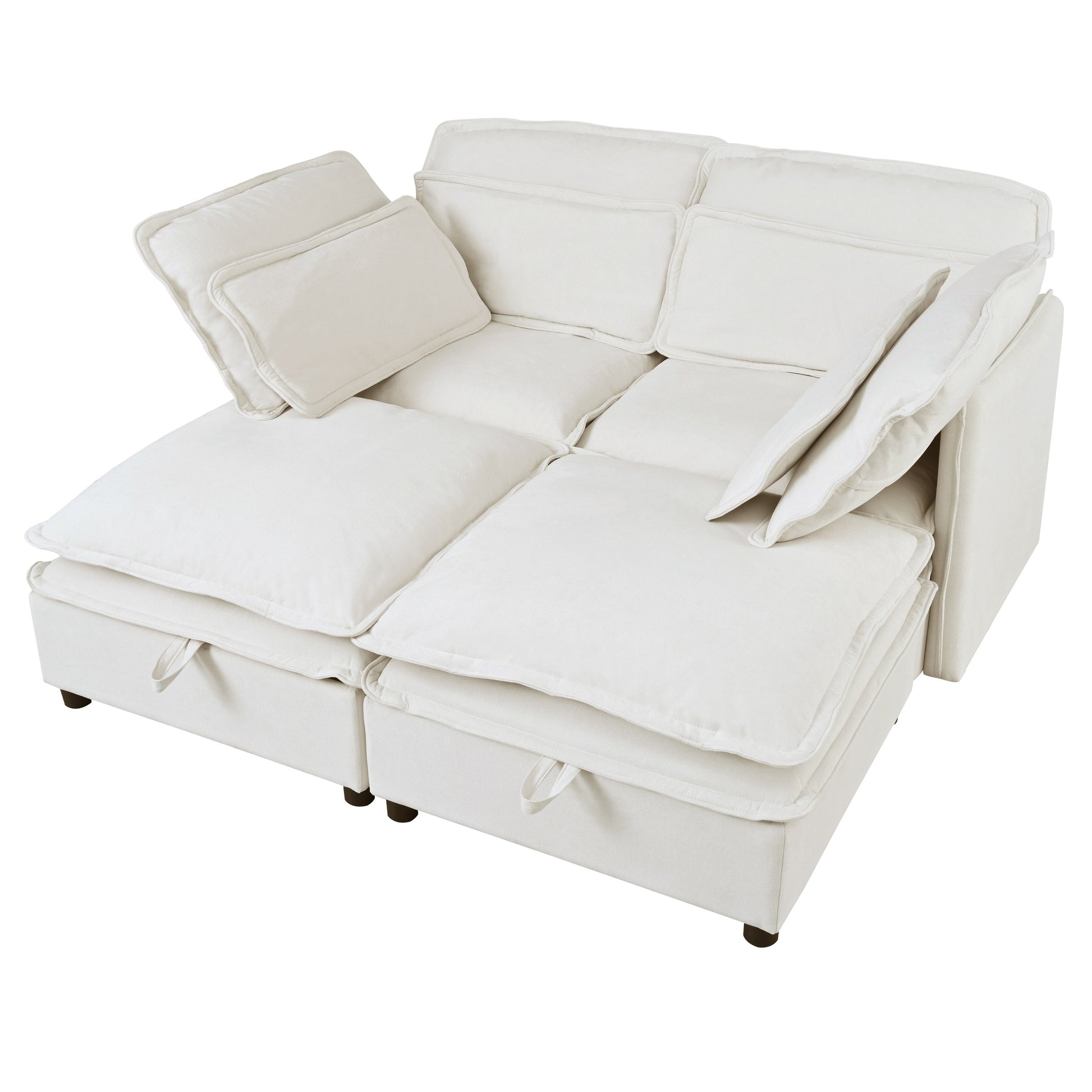 Double-Layer Cushion Modular Sofa 4-Seater with Storage Function