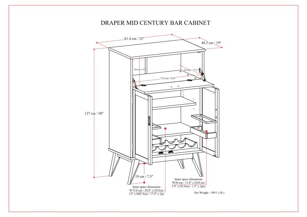 19.0"W x 32.0"D x 50.0"H - 109.1 lb