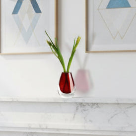 Make space for form and color. This red glass vase is shaped with a gentle teardrop curve and finished in a rich Drop Red tone that shifts with the light. Whether placed on a shelf or set as a table accent, it brings color without noise and works as both vessel and sculpture.