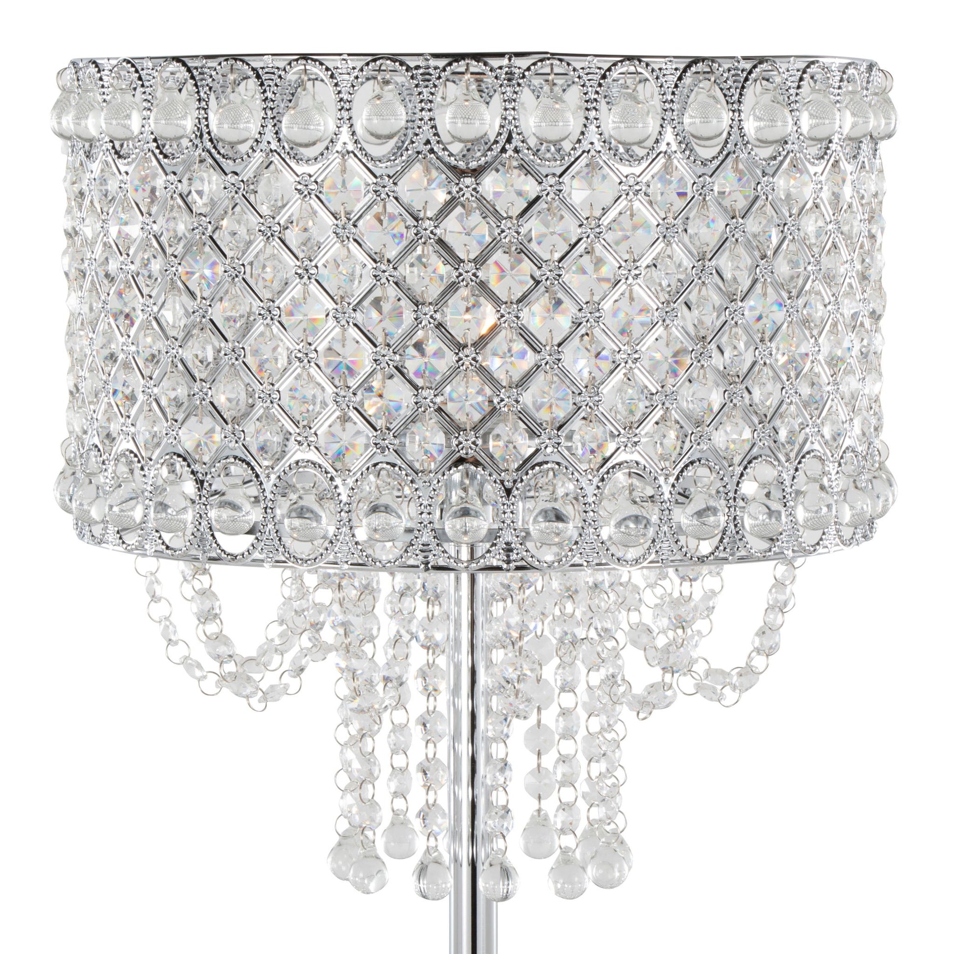 - Elegant Design: The Droplets Floor Lamp features a stunning metal shade adorned with individually threaded crystals and hanging crystal beads, offering a glamorous touch to modern interiors.