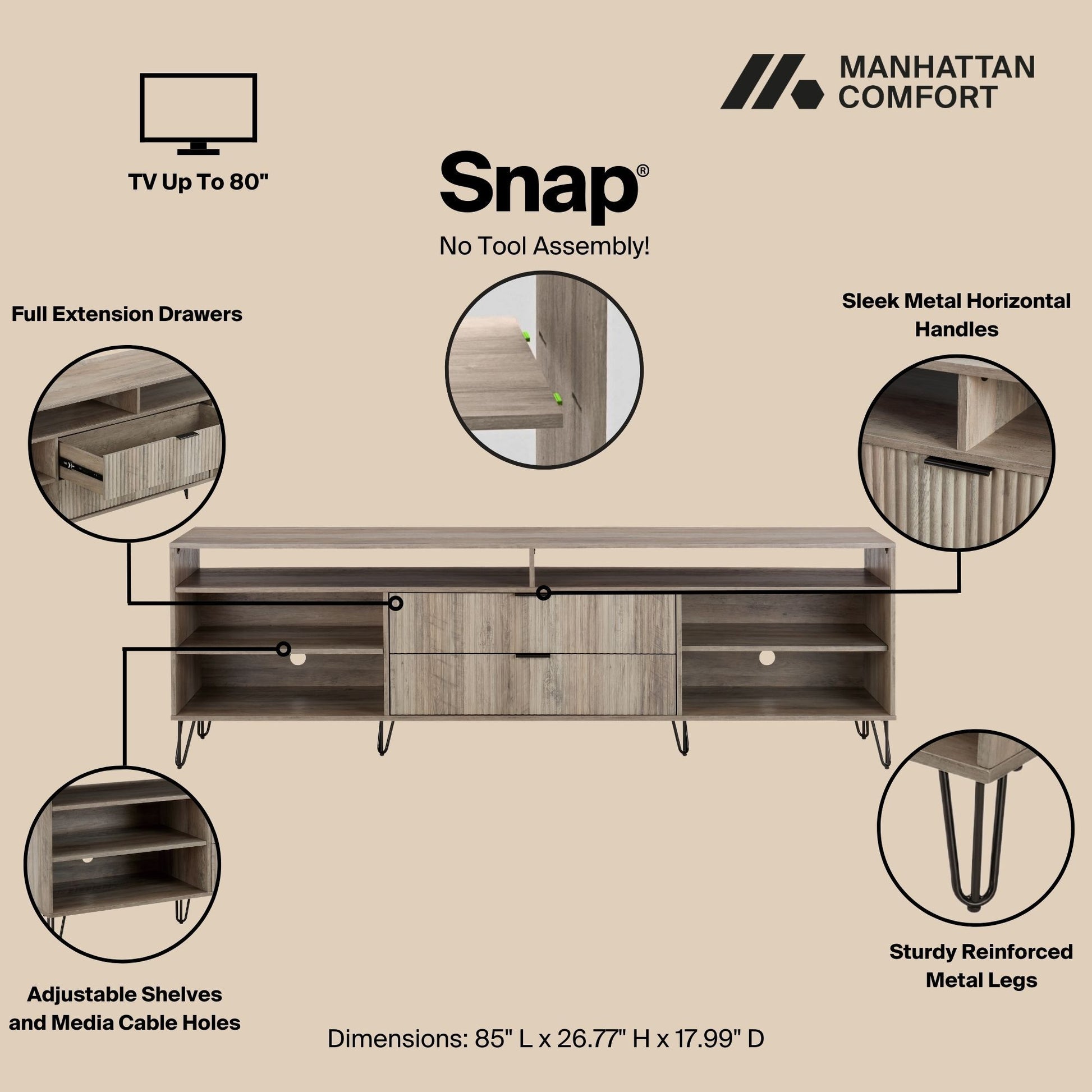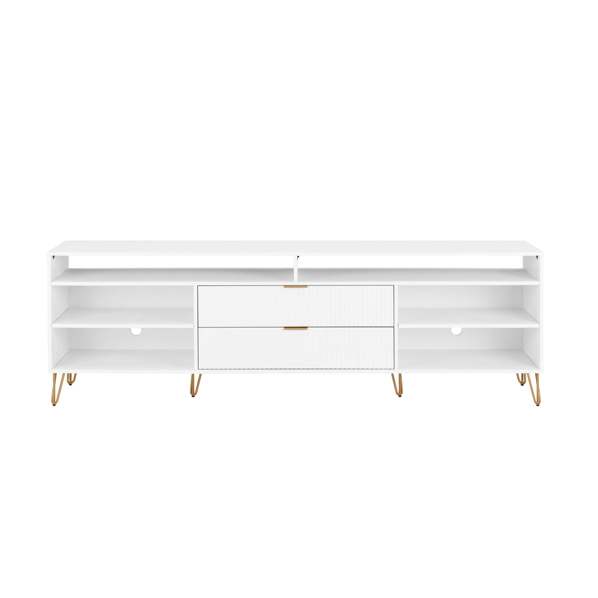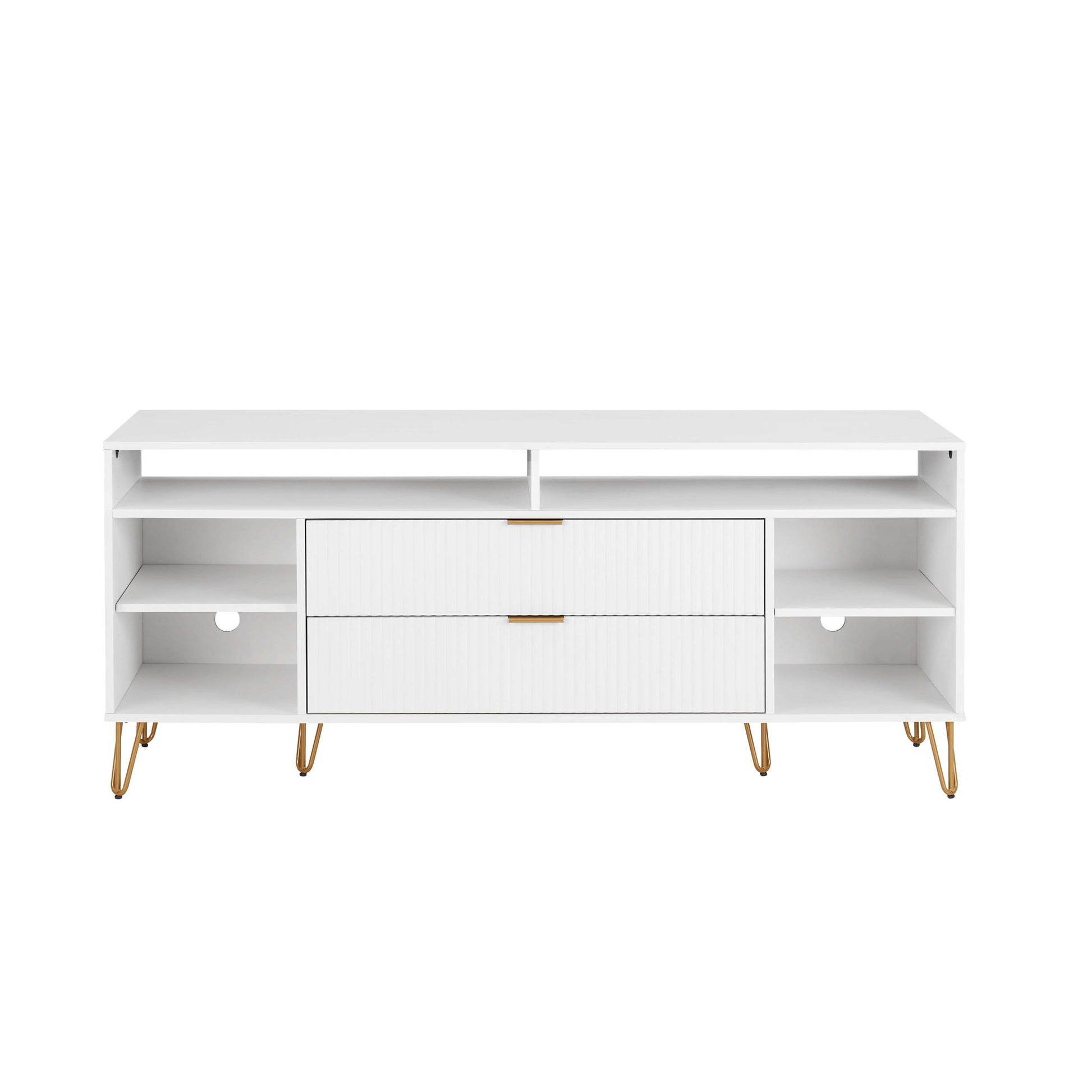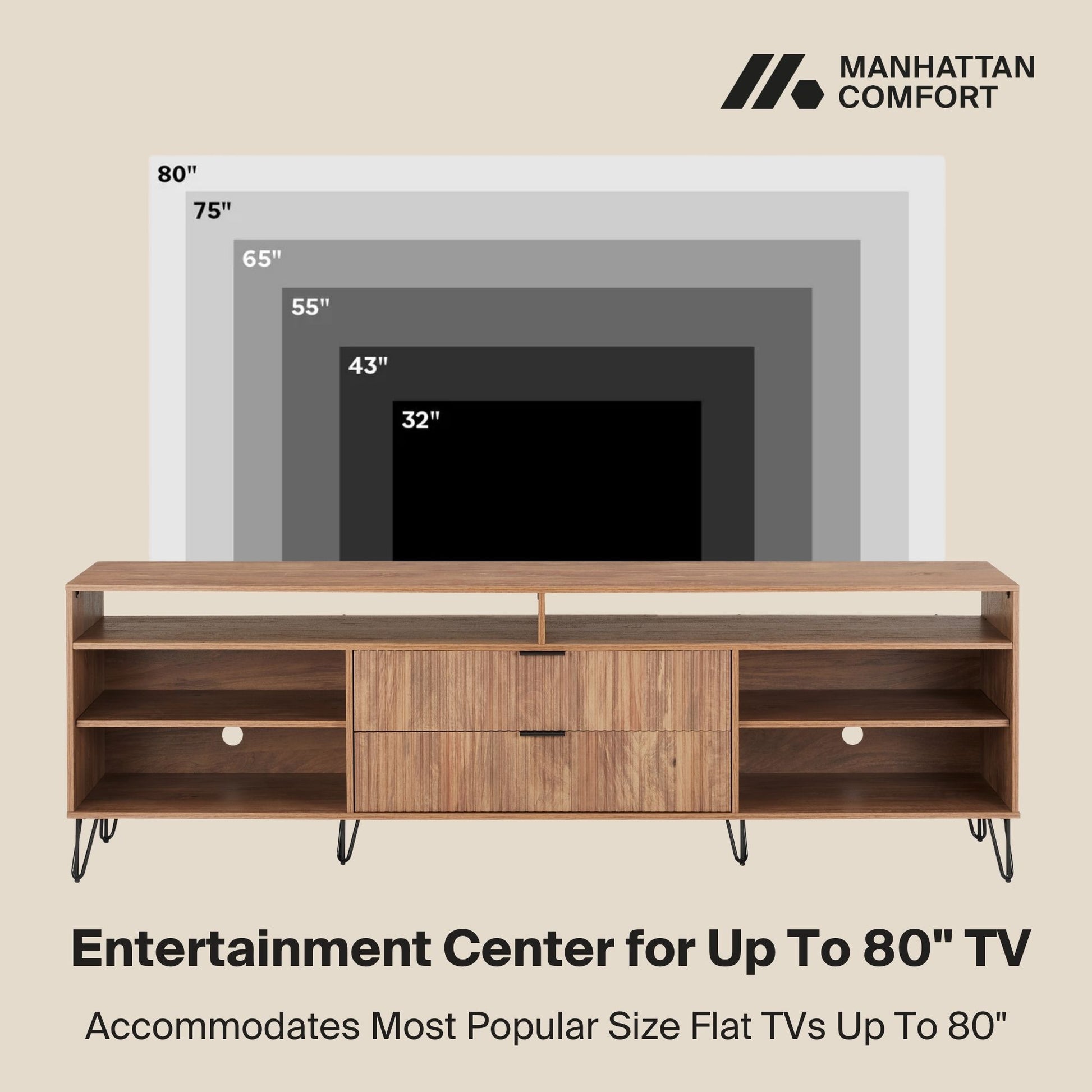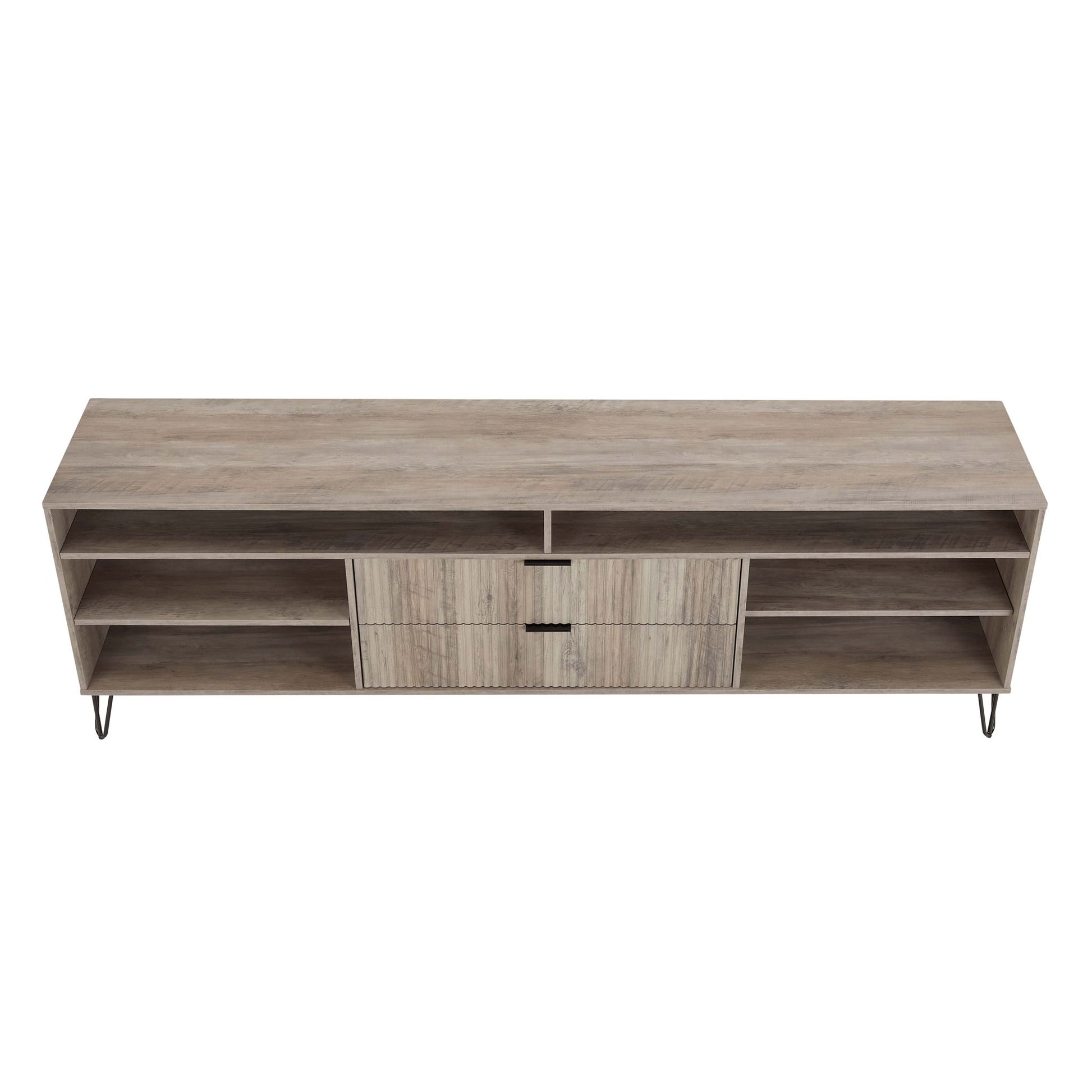 - Spacious Storage: Two full extension drawers and six shelves offer organized storage for electronics, remotes, and media collections.