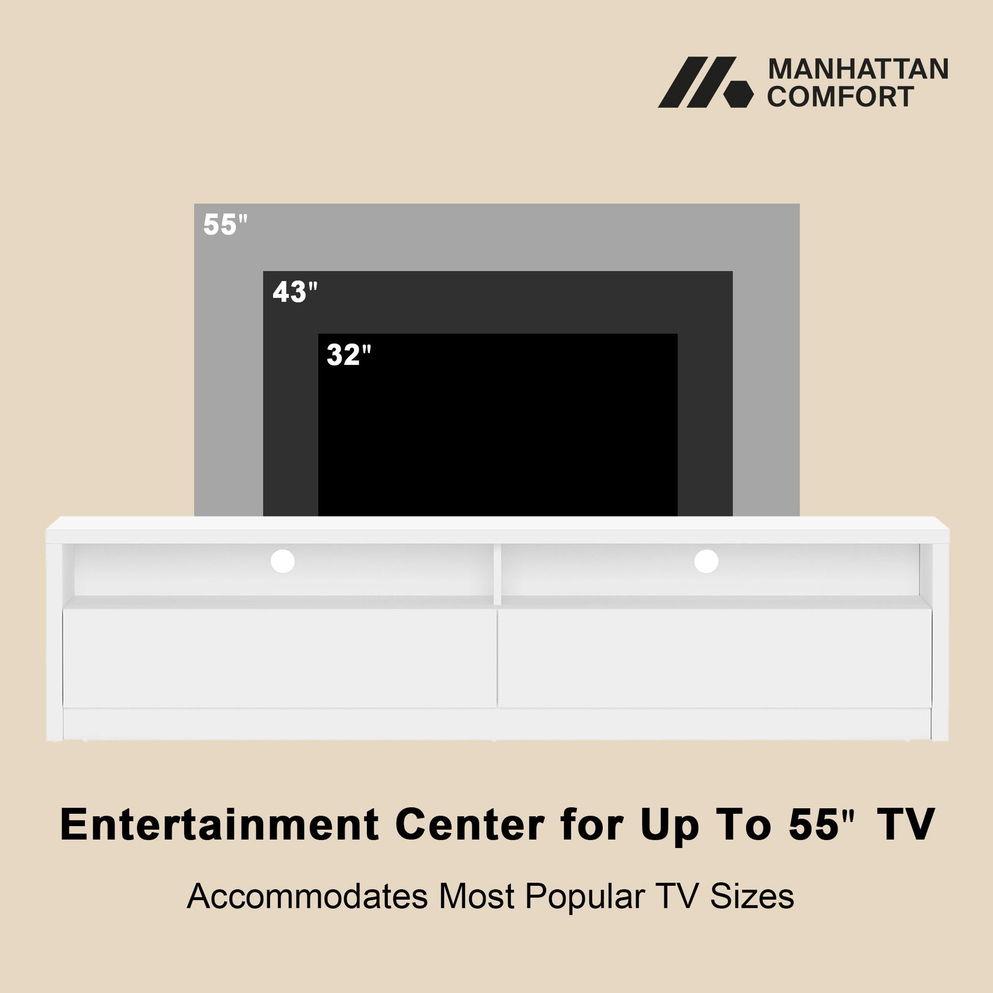 - TV Support: Designed to securely hold TVs up to 55 inches with stable, balanced structure