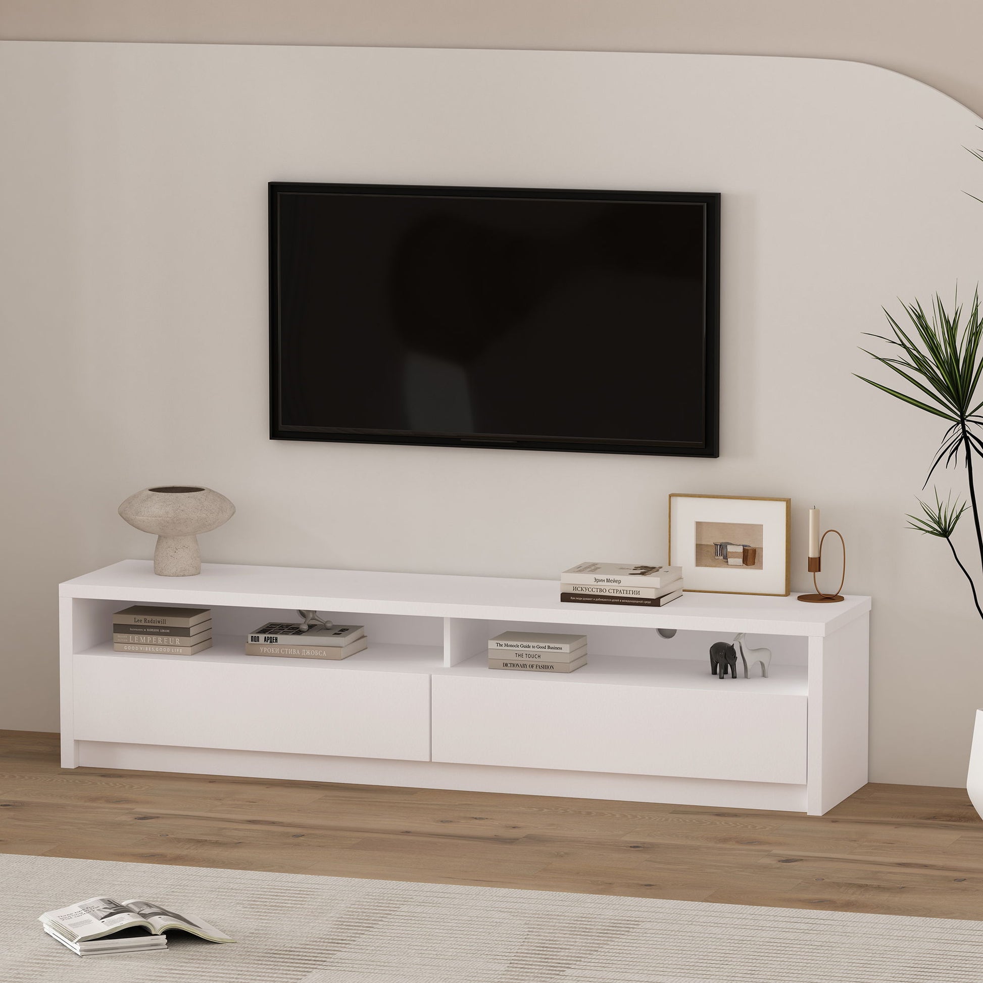 Duncan - 70" TV Stand With Full Extension Drawers - White