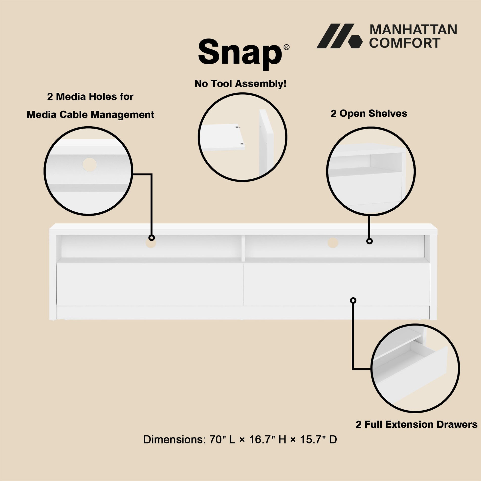 - Easy Assembly: Snap-it design with internal click grooves ensures quick, tool-free setup