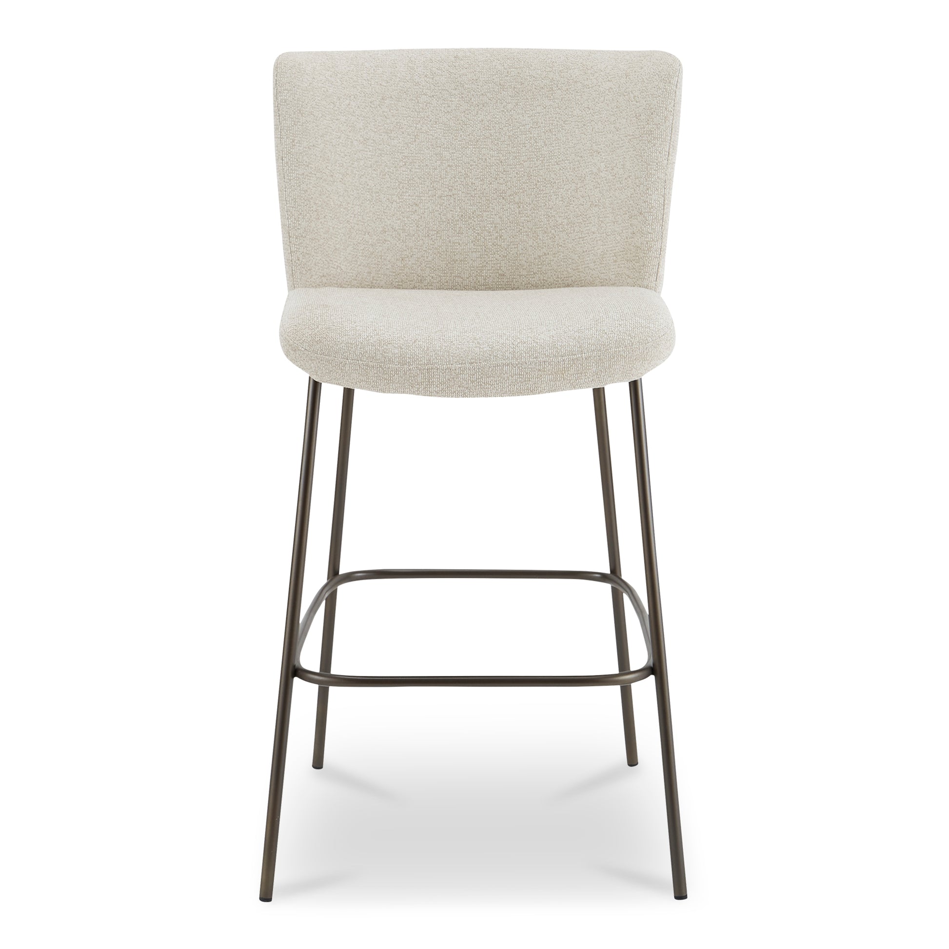 The Early bar stool is an elegant fusion of minimalist design and comfort that features a slim metal frame in a blackened bronze finish. Its seat and comfortably curved back are upholstered in durable faux mohair that resembles velvet�s soft allure but is easier to maintain. It complements any dining setting, especially alongside wooden tables, presenting a clean, cohesive look that invites sophisticated ease.