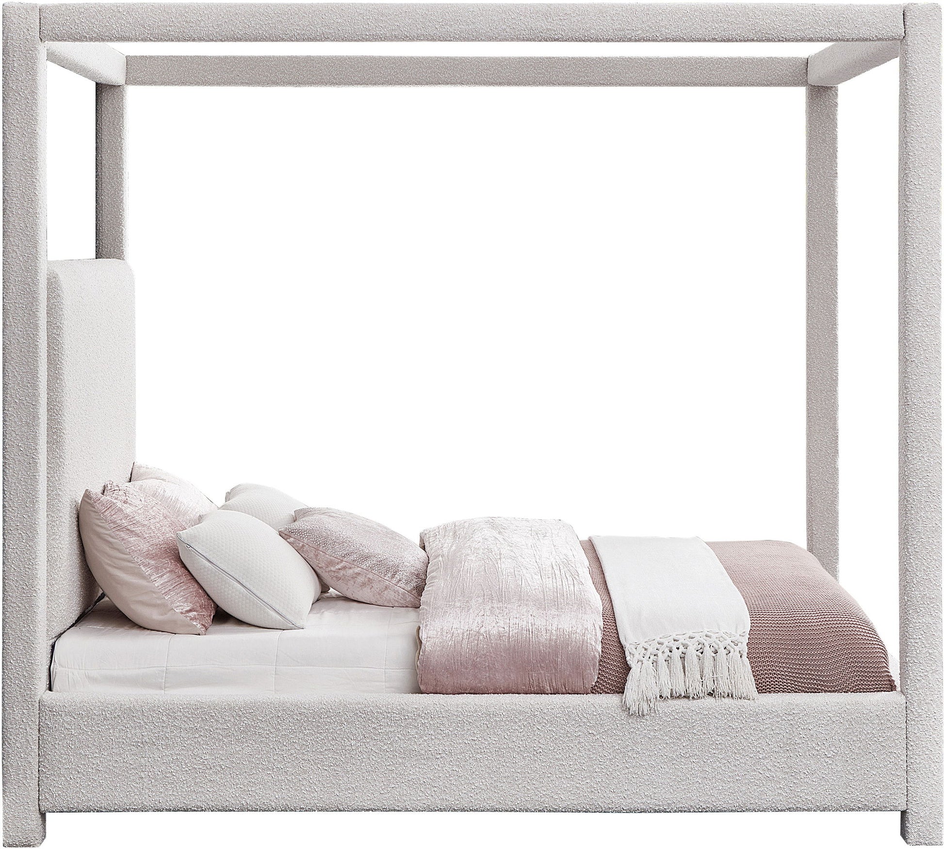 Experience the epitome of luxury and serenity with the Eden Boucle Fabric Canopy Bed, a majestic haven that elevates your bedroom into a royal chamber. Wrapped in a rich boucle fabric, this captivating bed exudes timeless elegance and invites you to indulge in restful nights and dreamy mornings. The airy canopy, draped in the same luxurious boucle fabric, creates a sense of intimacy and seclusion, transforming your sleeping space into a private sanctuary. Imagine reading a captivating book or enjoying a late-night conversation under the soft glow of string lights draped across the canopy, creating a truly magical atmosphere.
