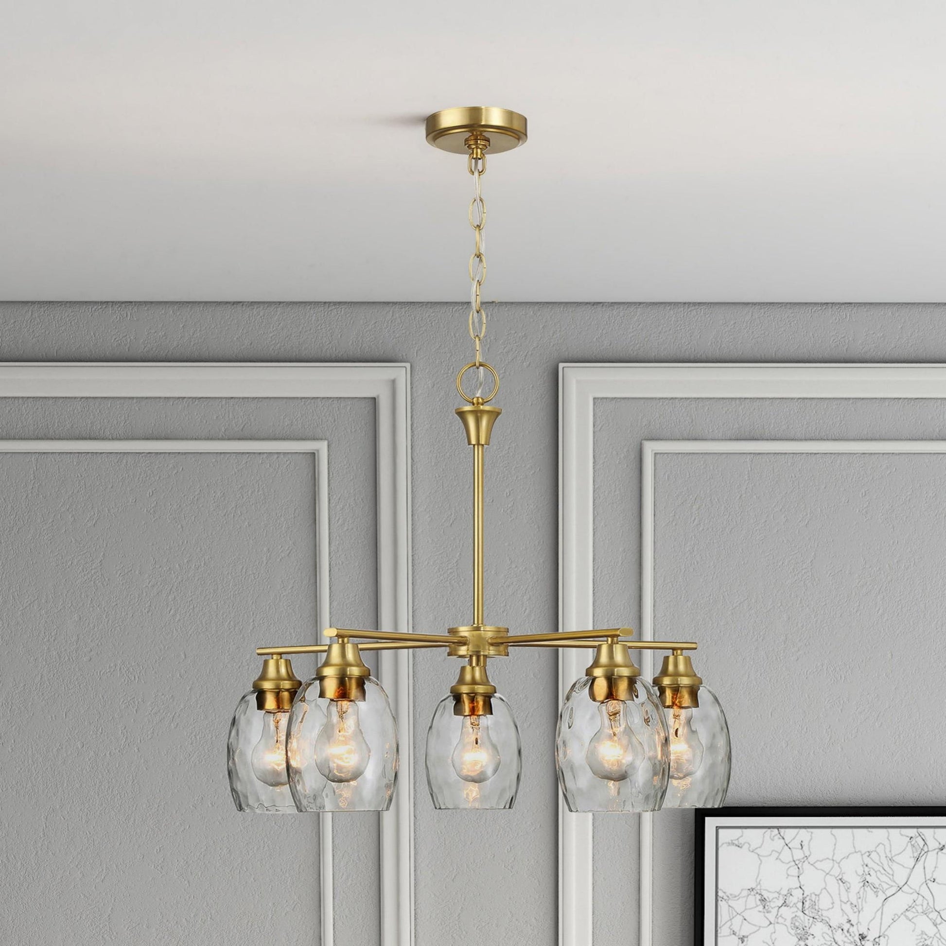 Elegance 5 Lights Linear Arms With Chain Chandelier - Clear / Gold