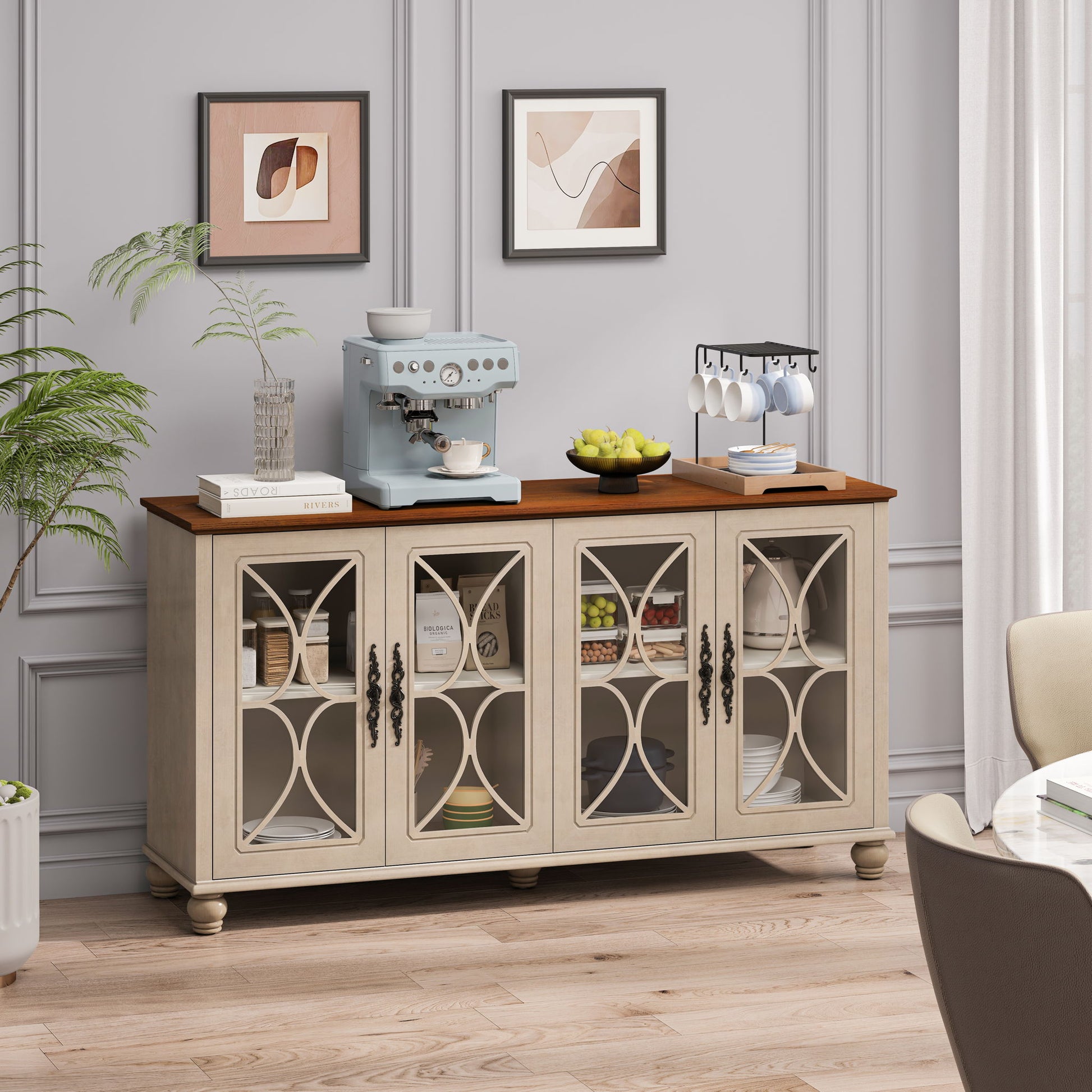 Elegant 4 Door Cabinet With Tempered Glass Doors - Beige