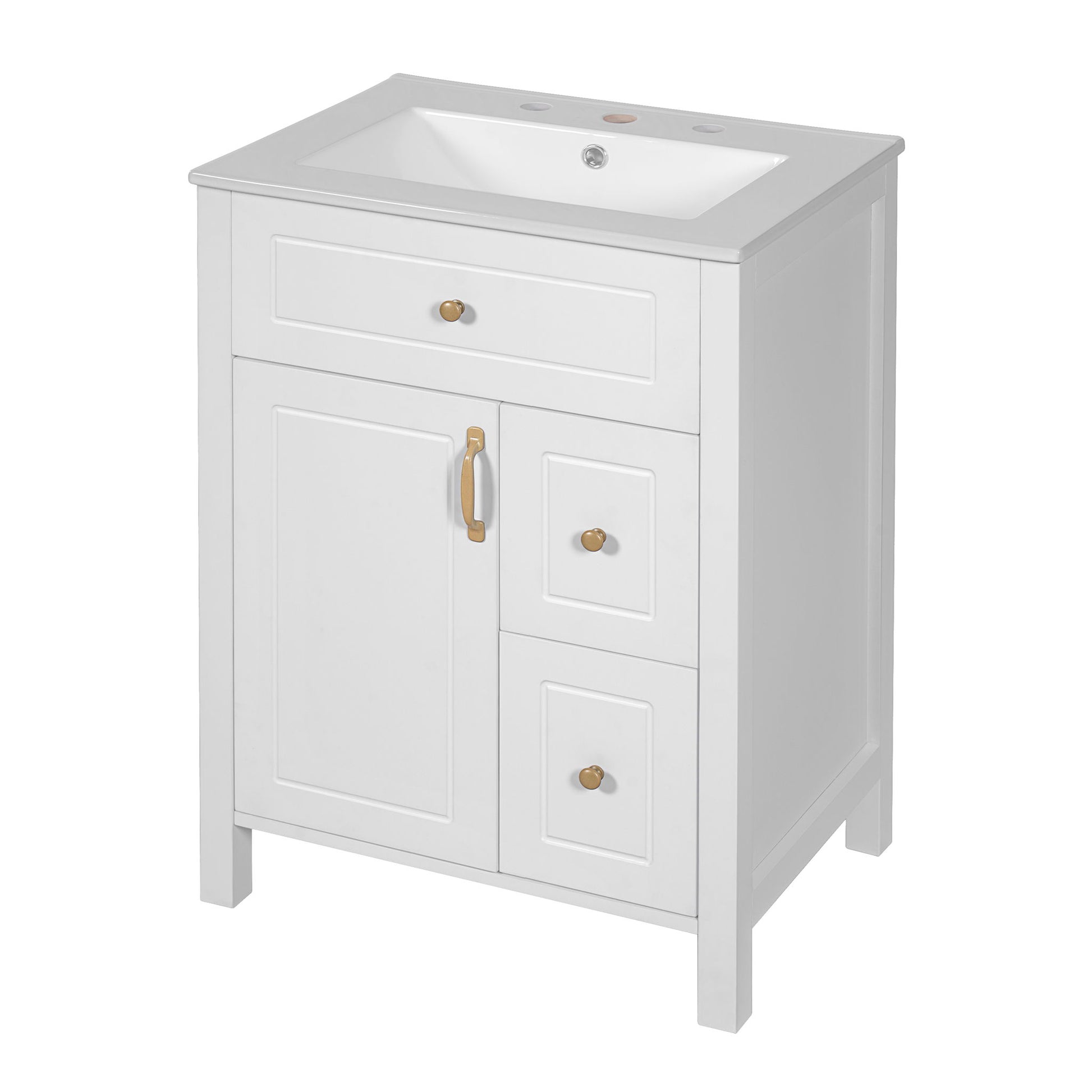 Bathroom Vanity With Sink, Soft Close Doors And Drawers, Double Storage Racks - White