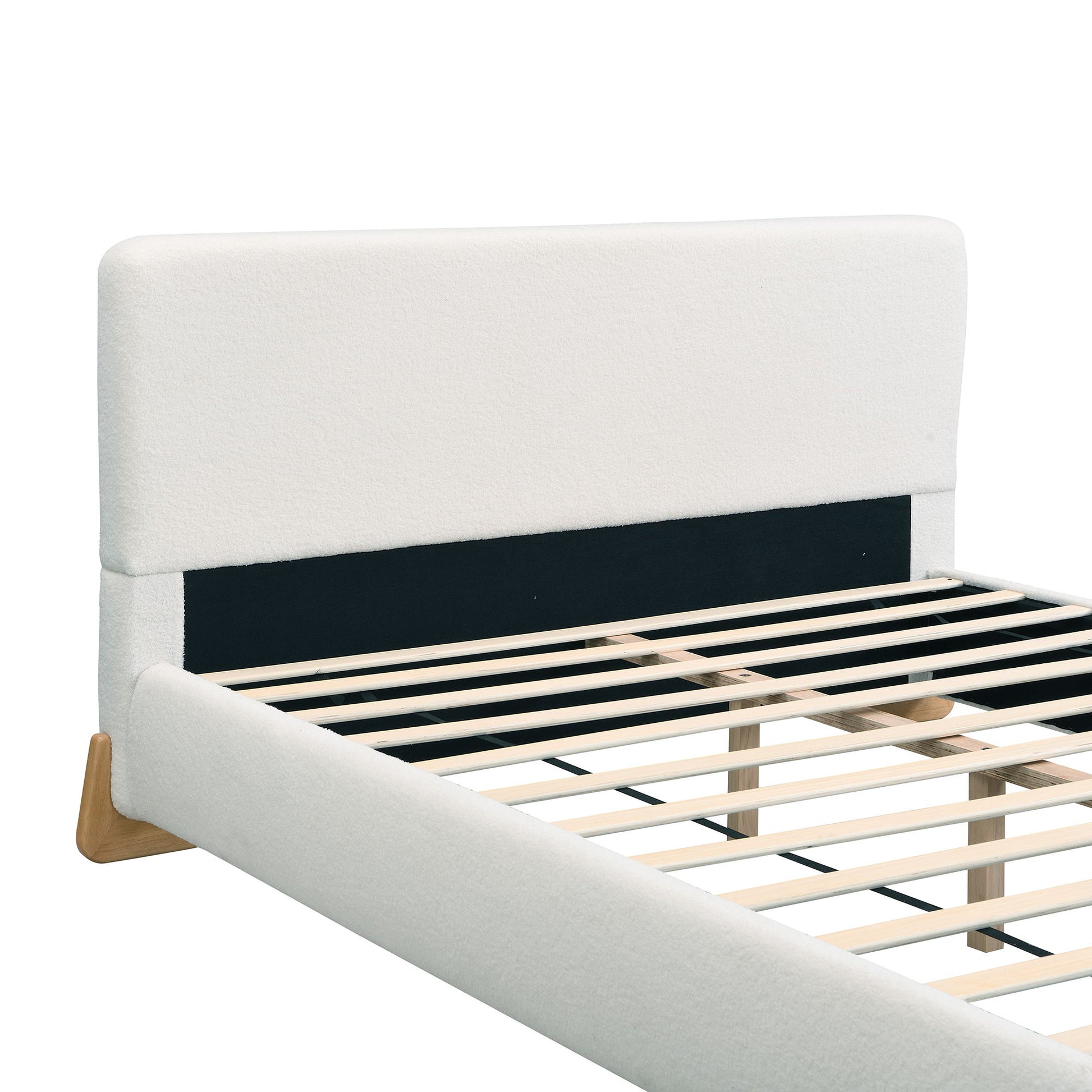 Elegant Boucle Upholstered Bed With Solid Wood Feet