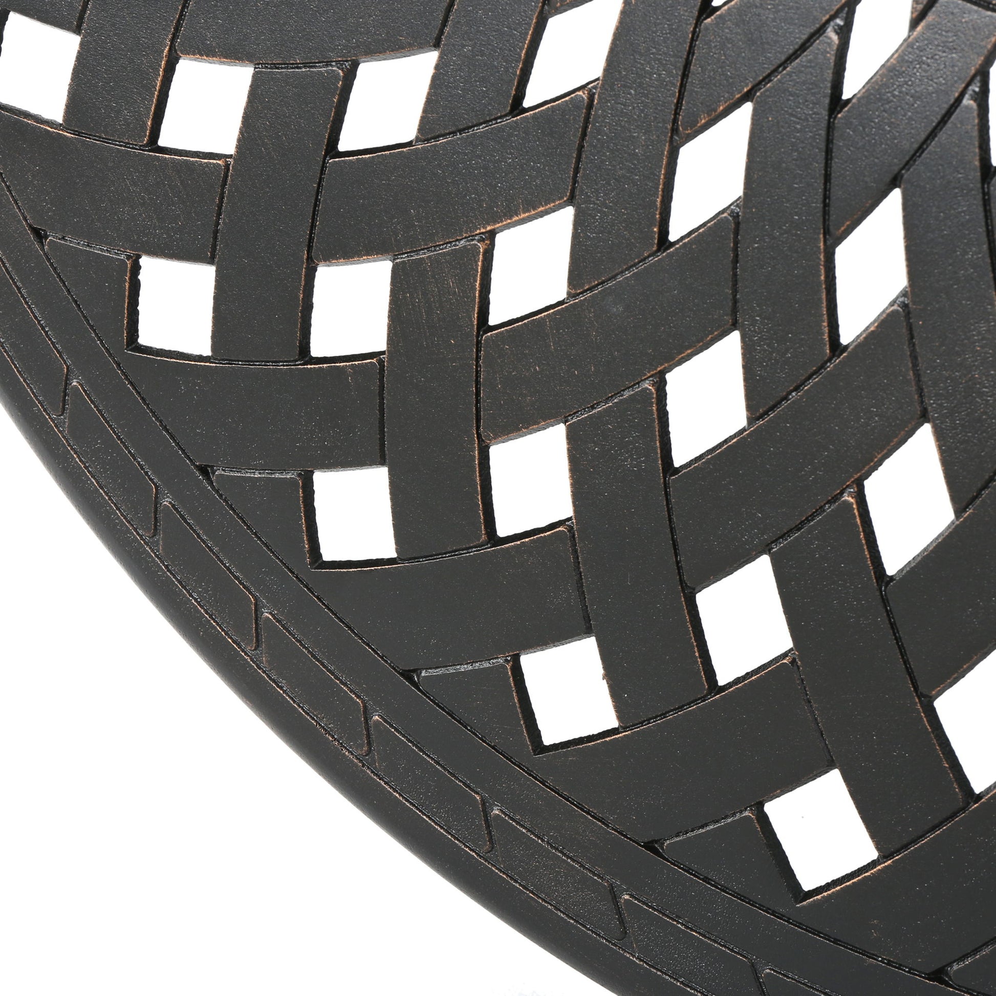 Elegant Cast Aluminum Round Bar Table With Romantic Filigree Design - Copper