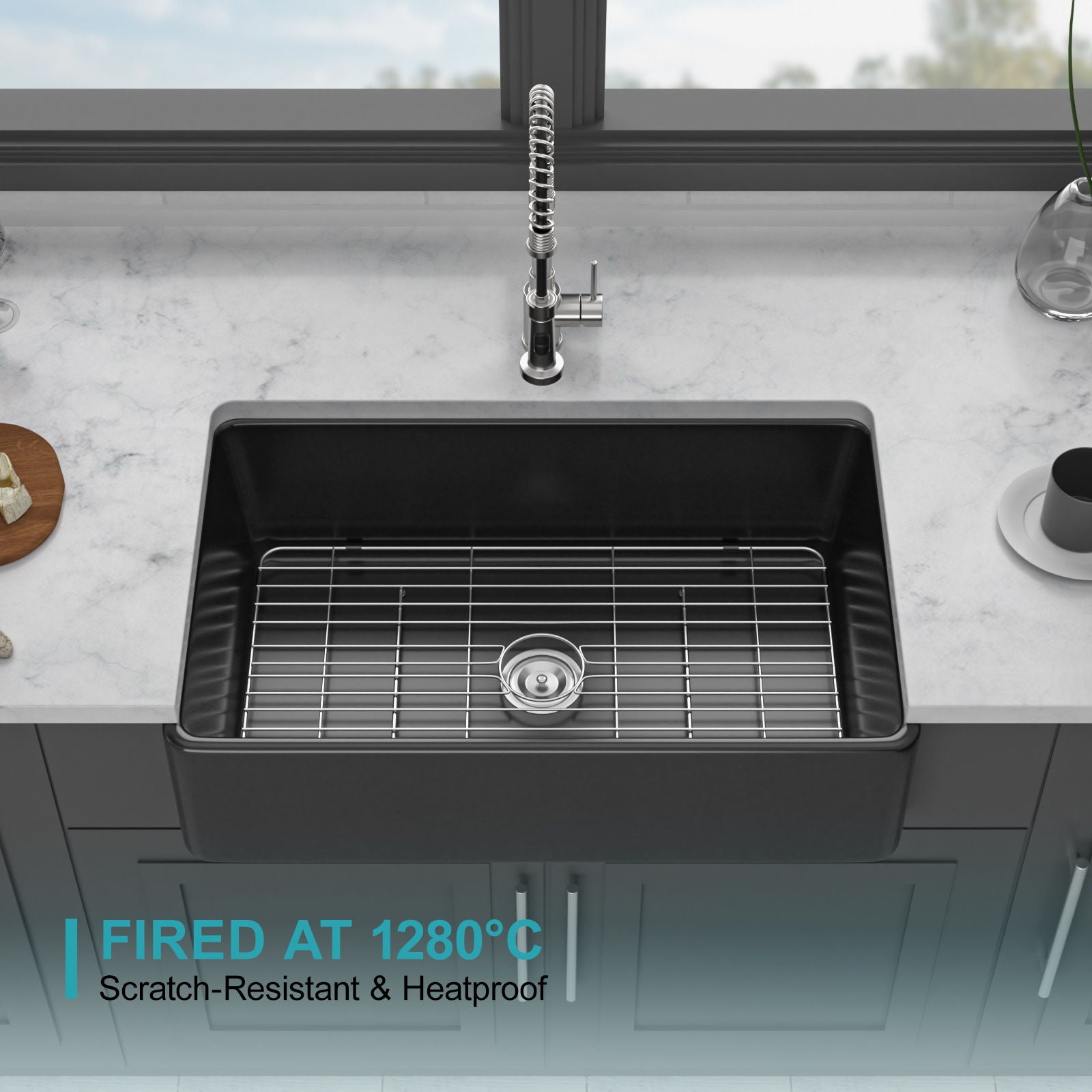 Single Bowl Apron Front Kitchen Sink - Matte Black