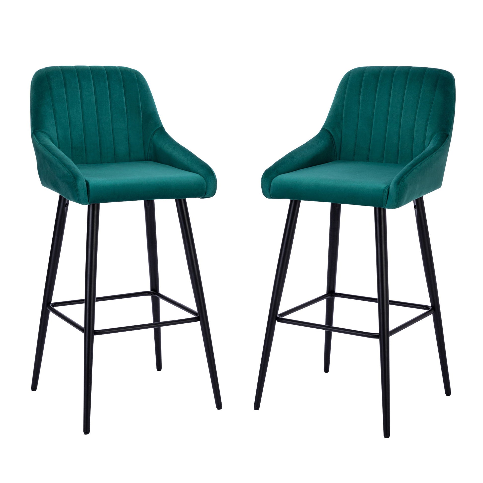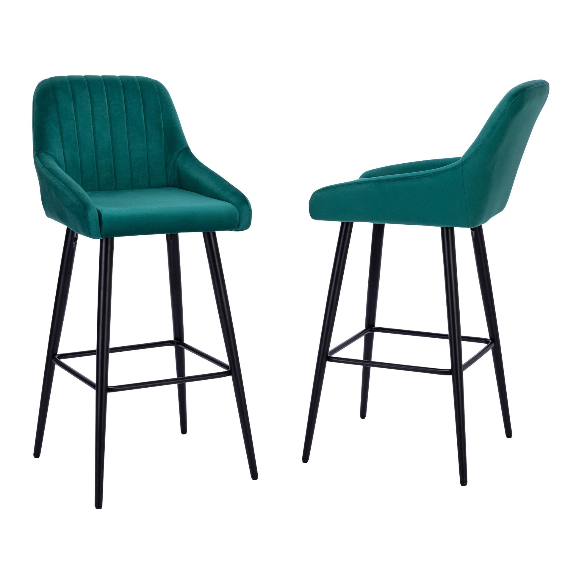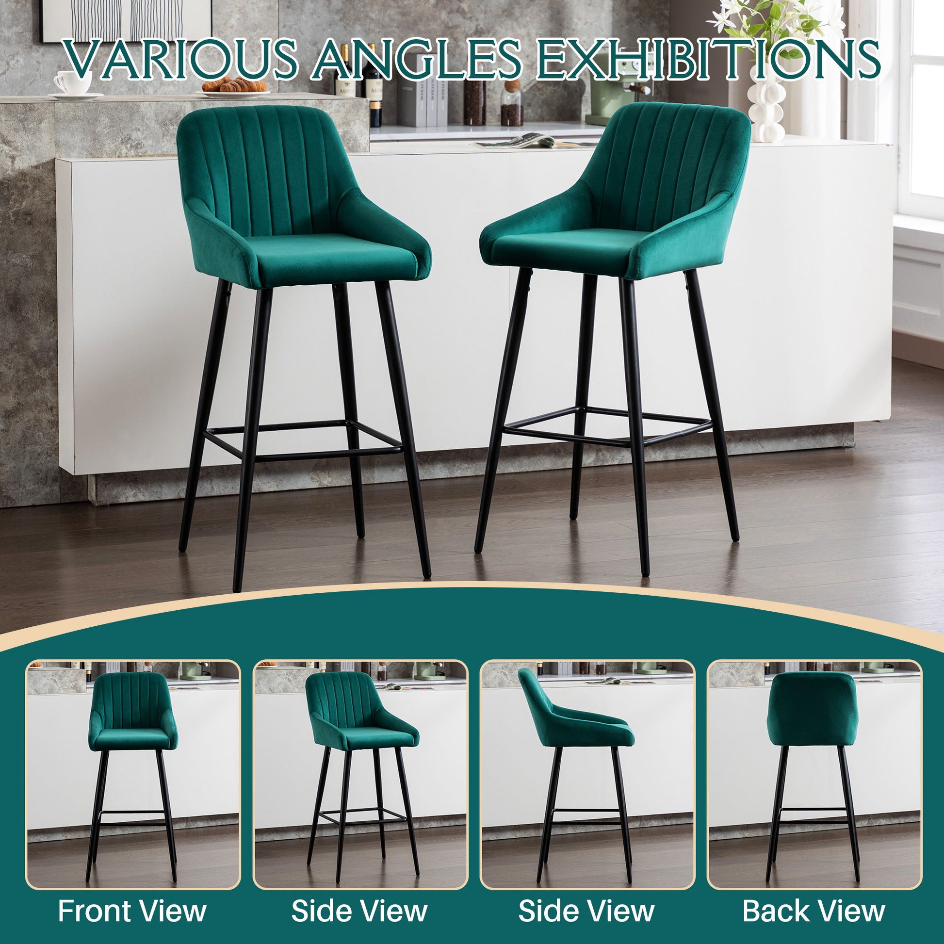 Elegant Lifestyle Modern Bar Stools, Velvet Upholstered Barstools With Back (Set of 2) Bar Chairs For Kitchen Living Room - Green