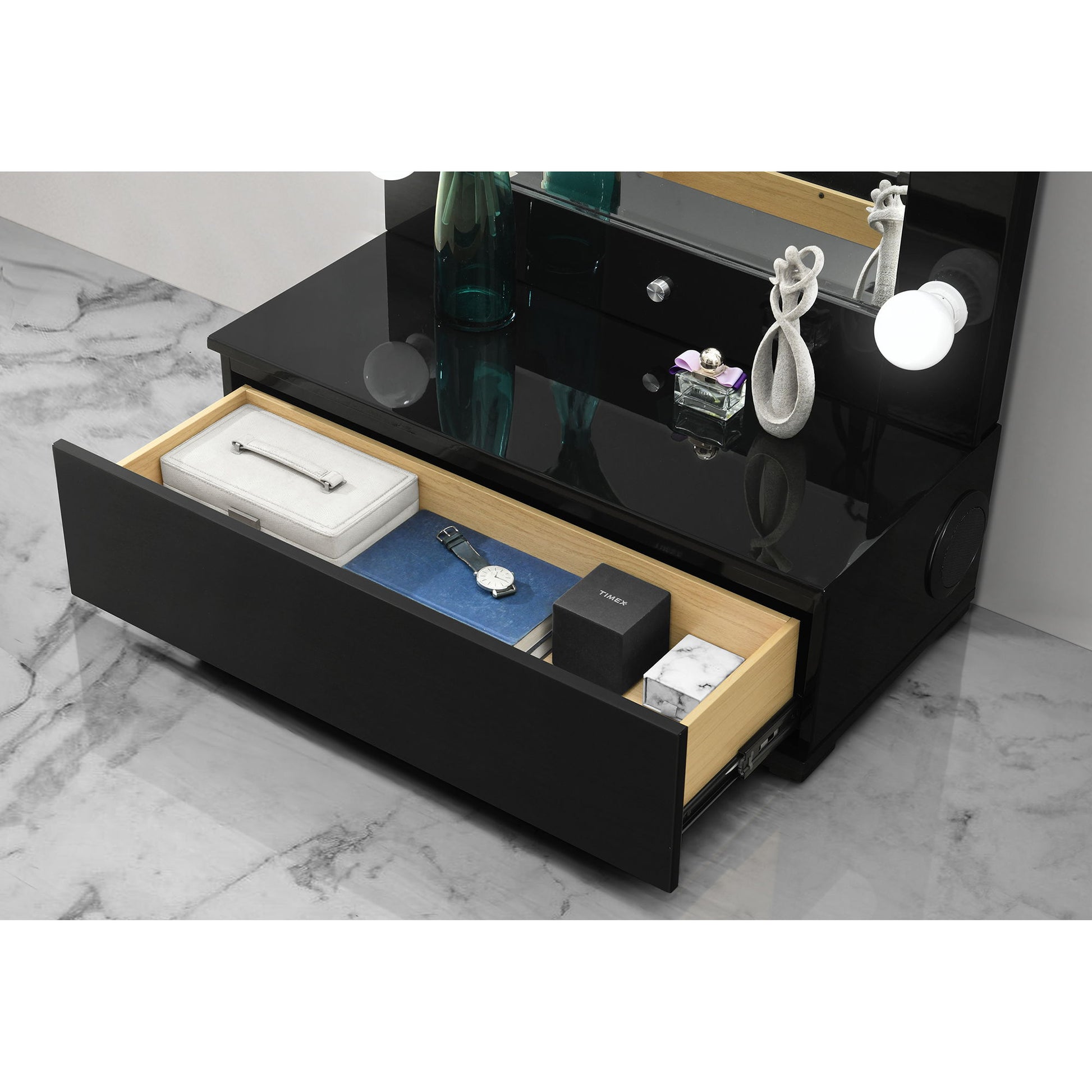 Elisa - Narrow Tall Mirror With Speaker And Drawer - Black