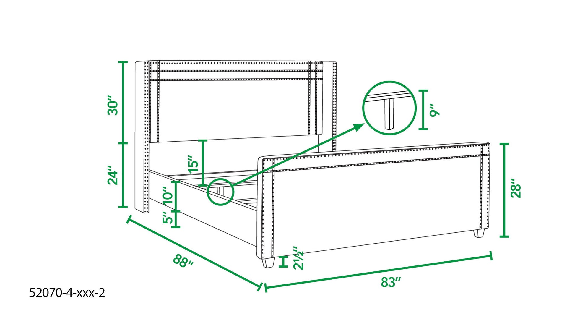 - Elegant Design: Hand-applied iron nailhead accents with a satin silver finish add an elegant touch to the bed's design.