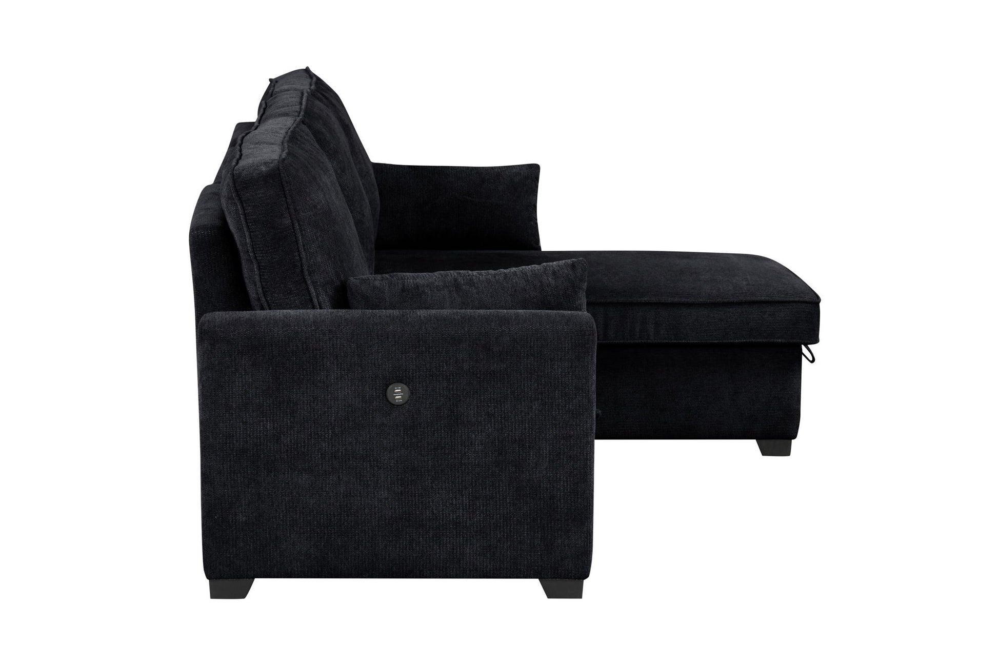 Ember - Sleeper Sectional With Reversible Storage Chaise, USB Charging Ports, And Cupholders - Black