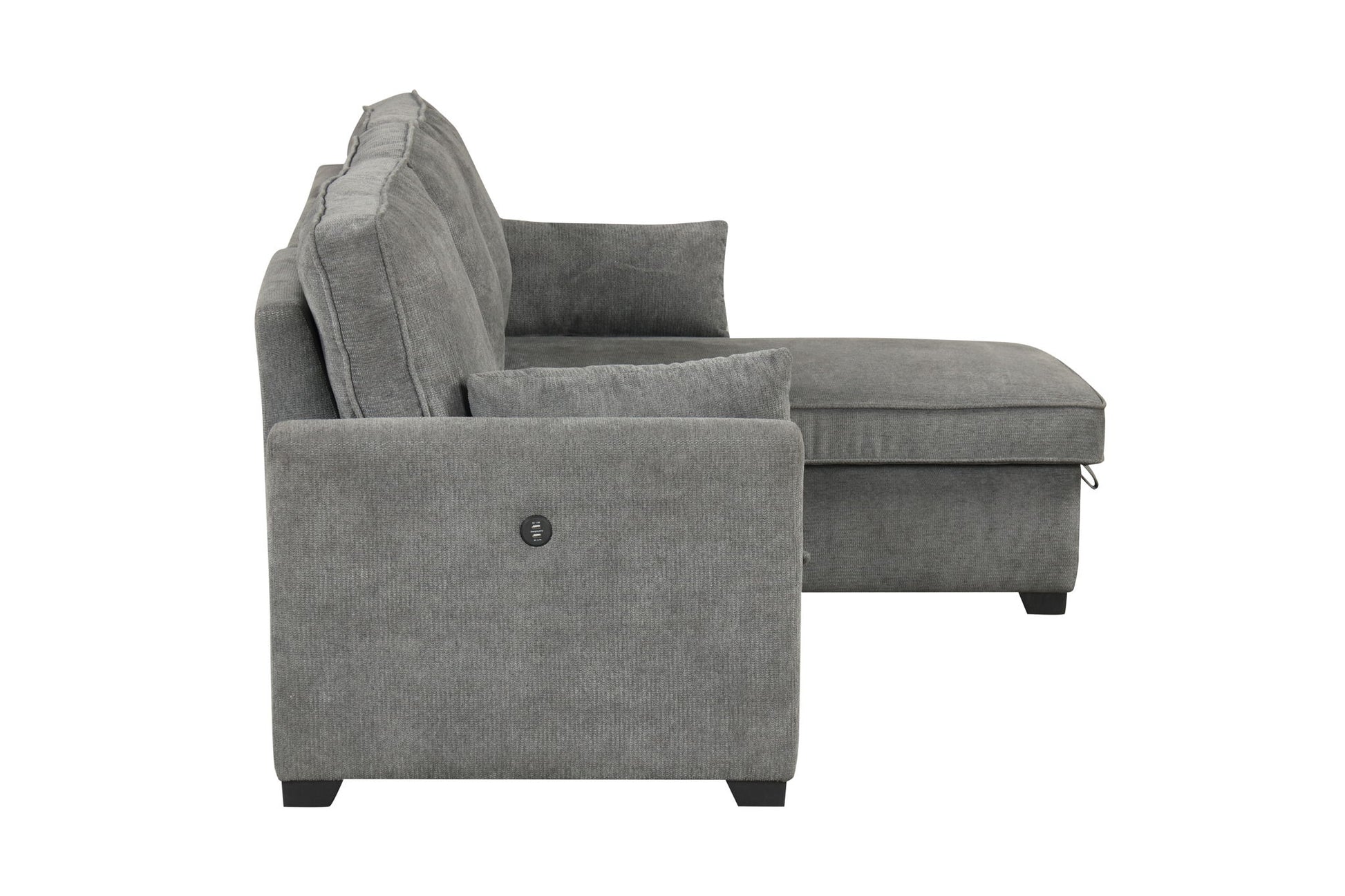 Ember - Sleeper Sectional With Reversible Storage Chaise, USB Charging Ports, And Cupholders - Gray