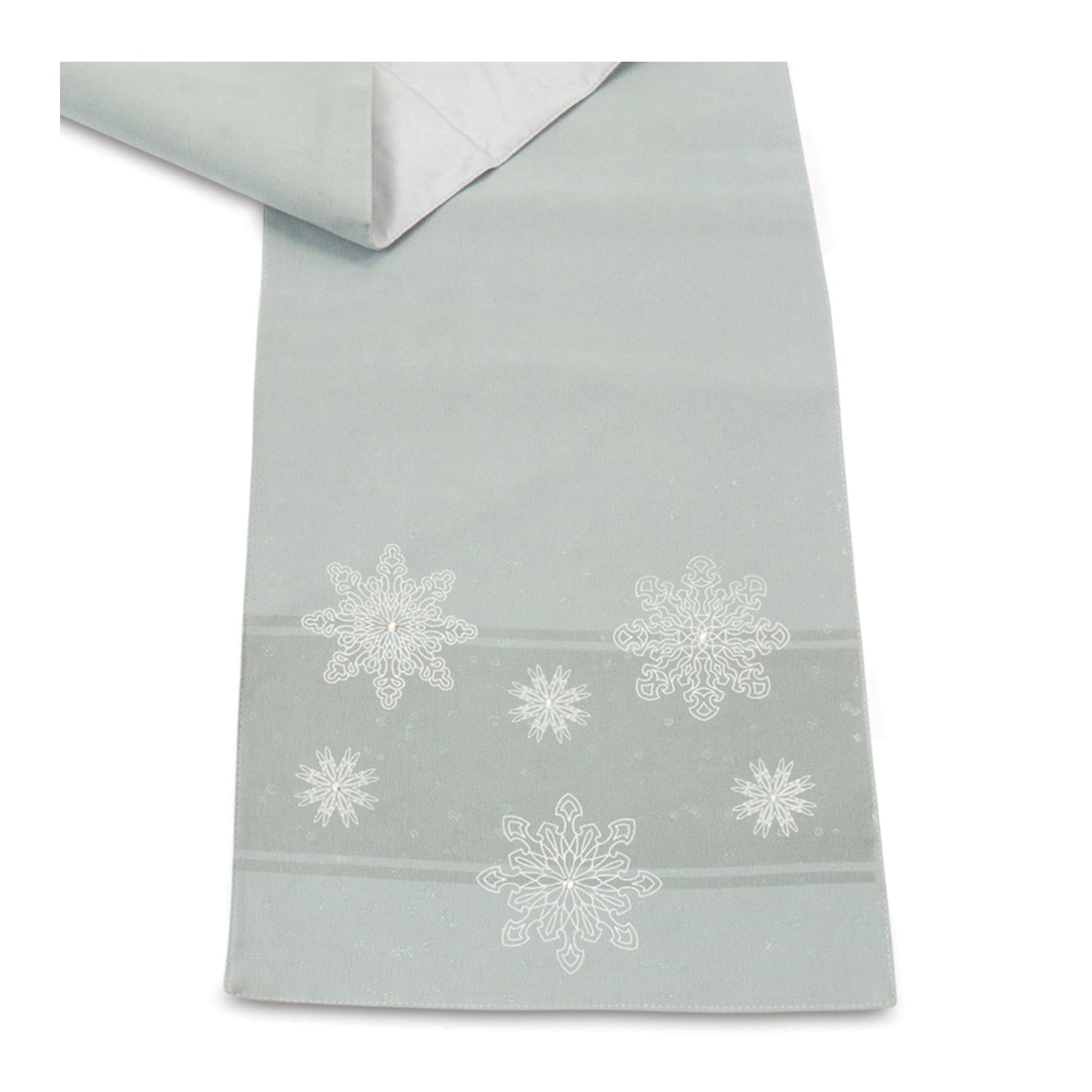 Add a touch of winter elegance to your home with the Embroidered Snowflake Table Runner. This beautiful table runner features wintry navy blue and white tones with an elegant embroidered snowflake design, creating a festive atmosphere for your holiday gatherings. The cotton top paired with polyester backing ensures both style and durability. Perfect for displaying on your dining table during Christmas celebrations or as an accent piece on your entryway table beneath a seasonal display.