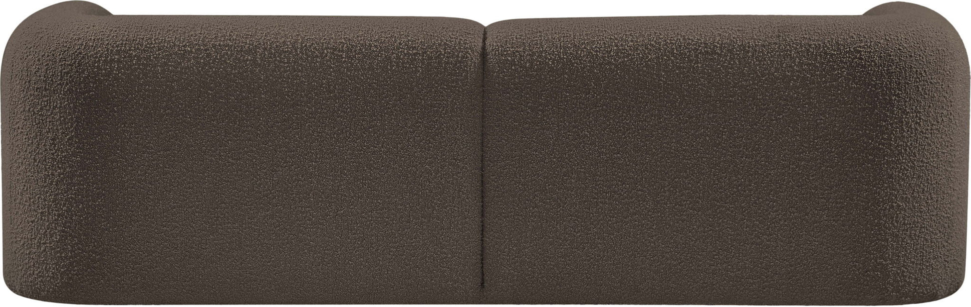 The Emory Sofa draped in the rich boucle fabric is a sight to behold. Its captivating elegance is matched only by its comfort, making it the epitome of style and relaxation. The texture of the fabric adds depth and dimension to the sofa, making it a stunning addition to any room. With its sleek design and cozy feel, the Emory Sofa is the perfect place to unwind and indulge in a moment of pure luxury.