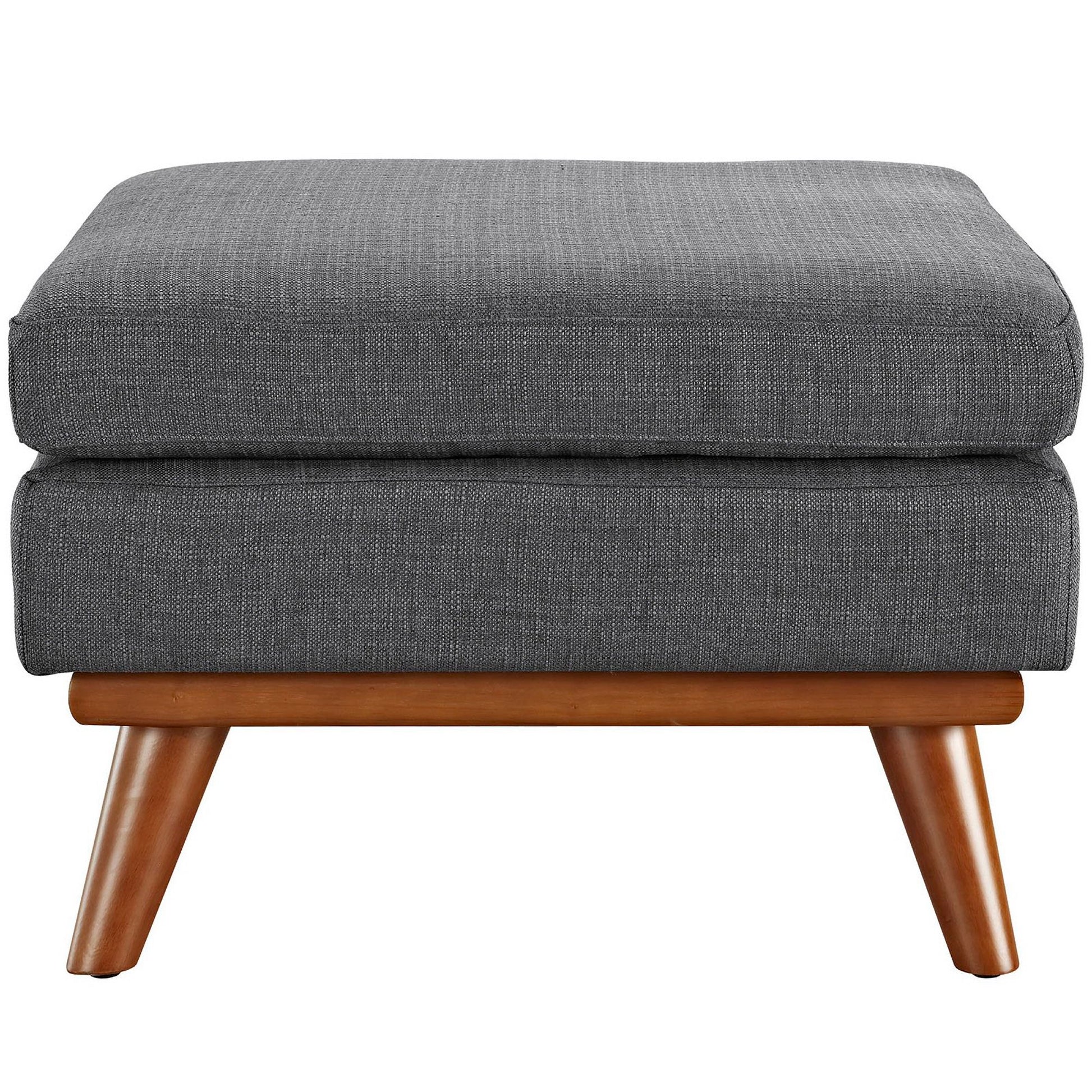 Gently sloping curves and plush cushion create a favorite lounging spot. Whether relaxing after a long day at work, settling in with coffee and brunch, or entering a spirited discussion with friends, the Engage ottoman is a welcome presence in your home. Rubberwood legs and frame supply a solid base to this quality upholstered fabric piece.